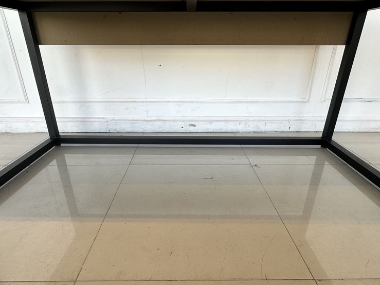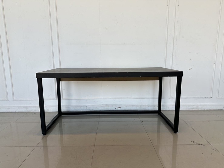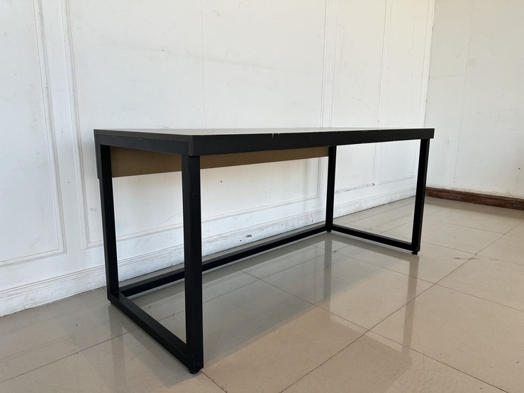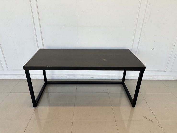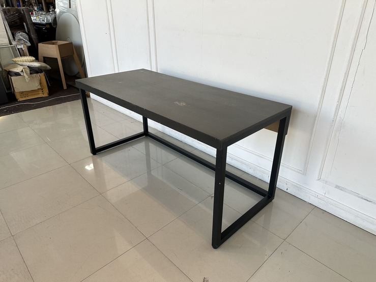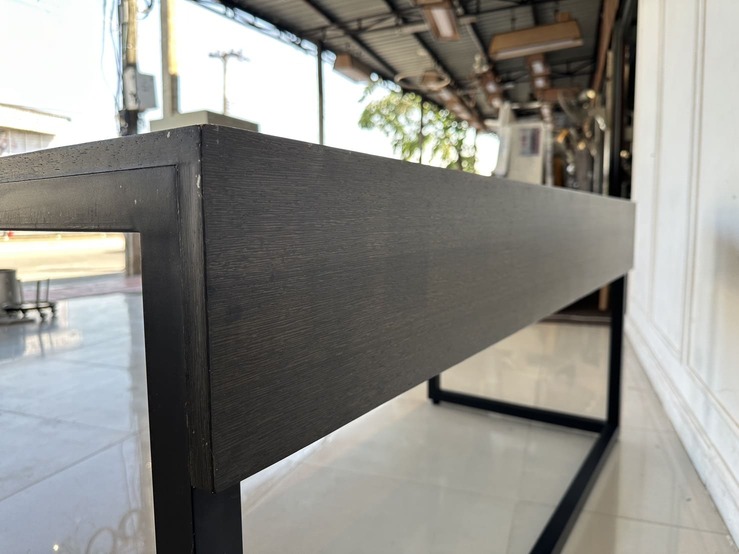 โต๊ะทำงาน ท็อปไม้จริงสีน้ำตาล ขาเหล็กสีดำ