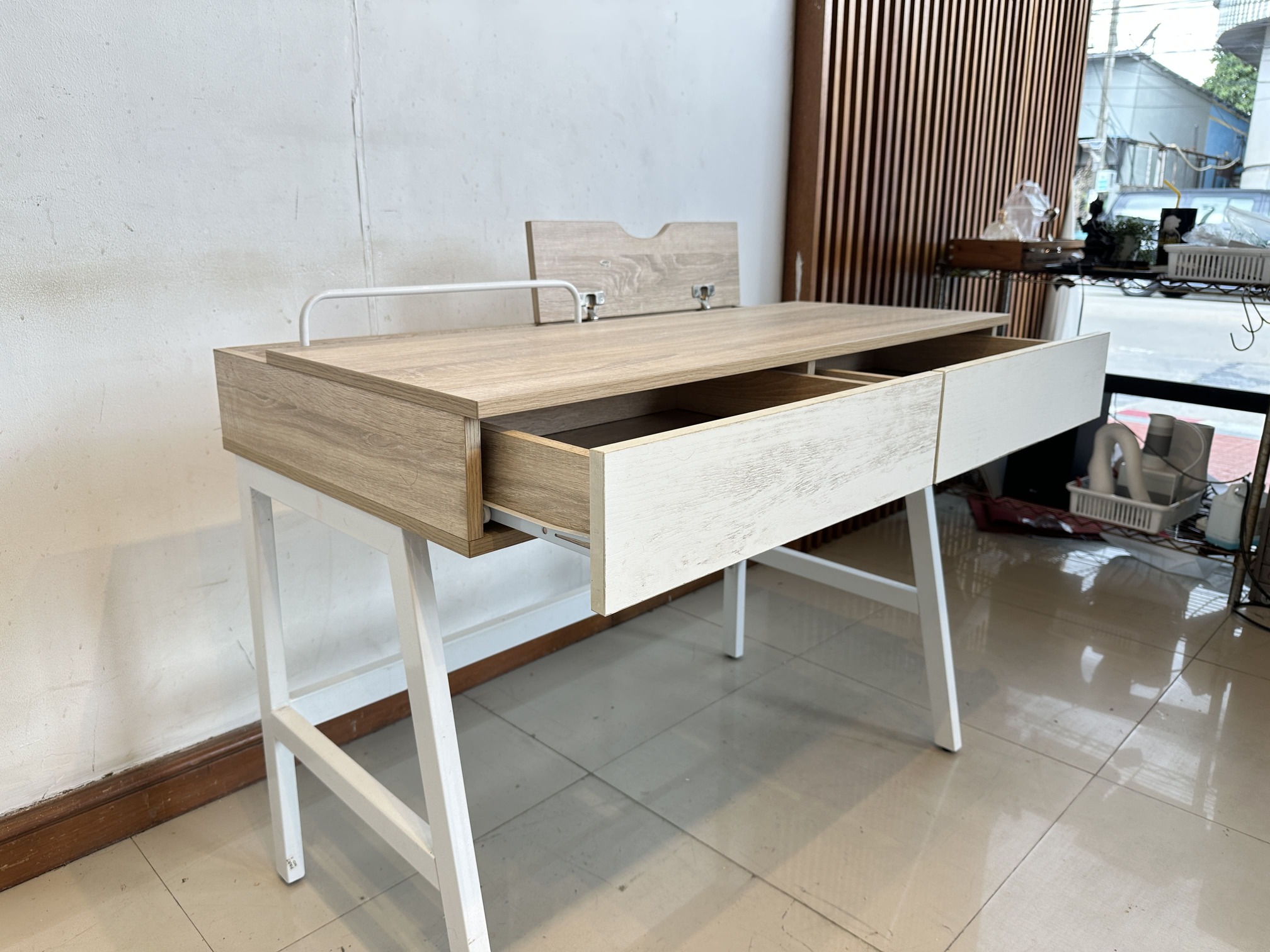 โต๊ะทำงาน 2 ลิ้นชัก มีช่องเก็บของ 1 บานเปิด โครงไม้ MDF สีบีช