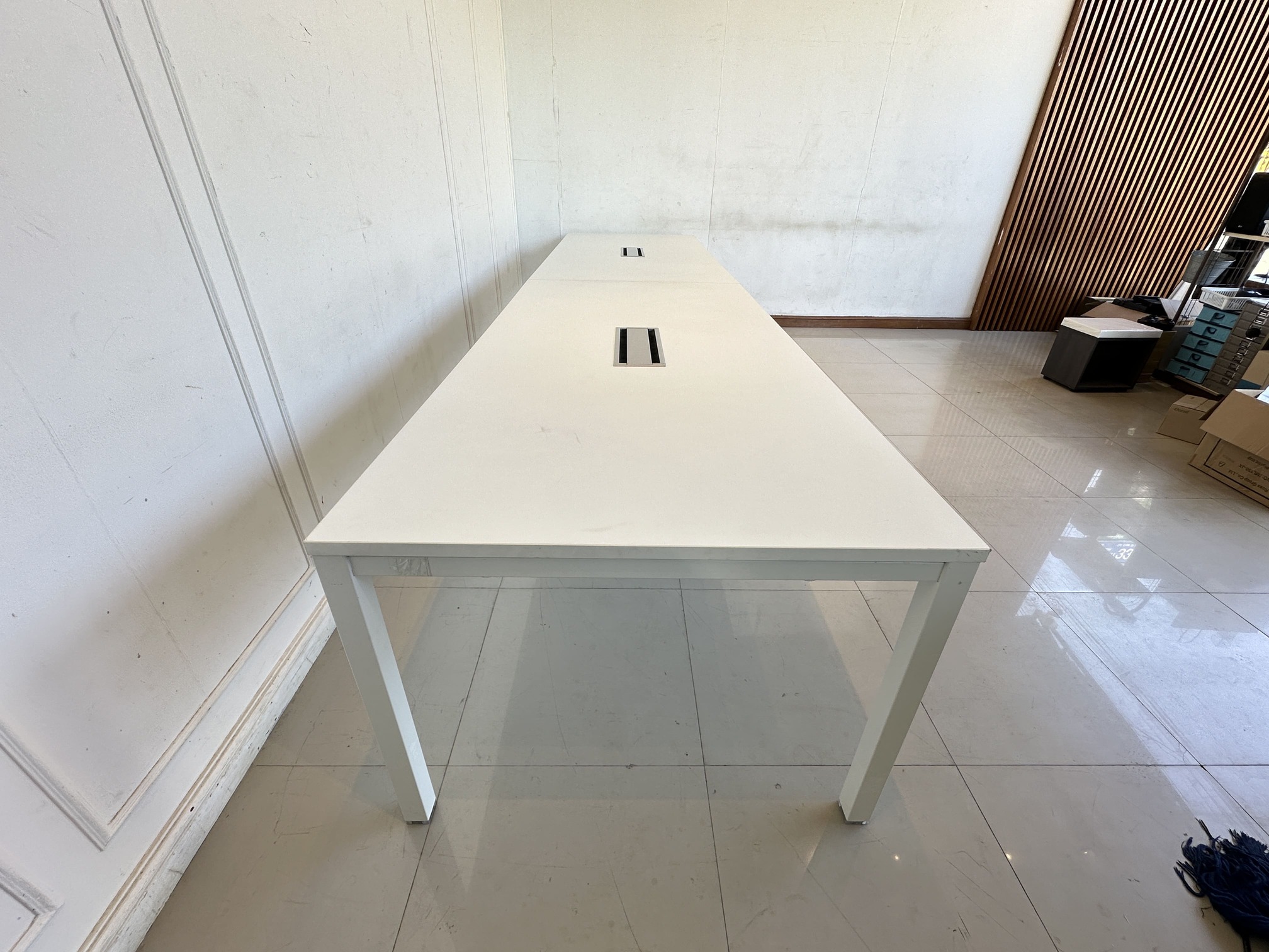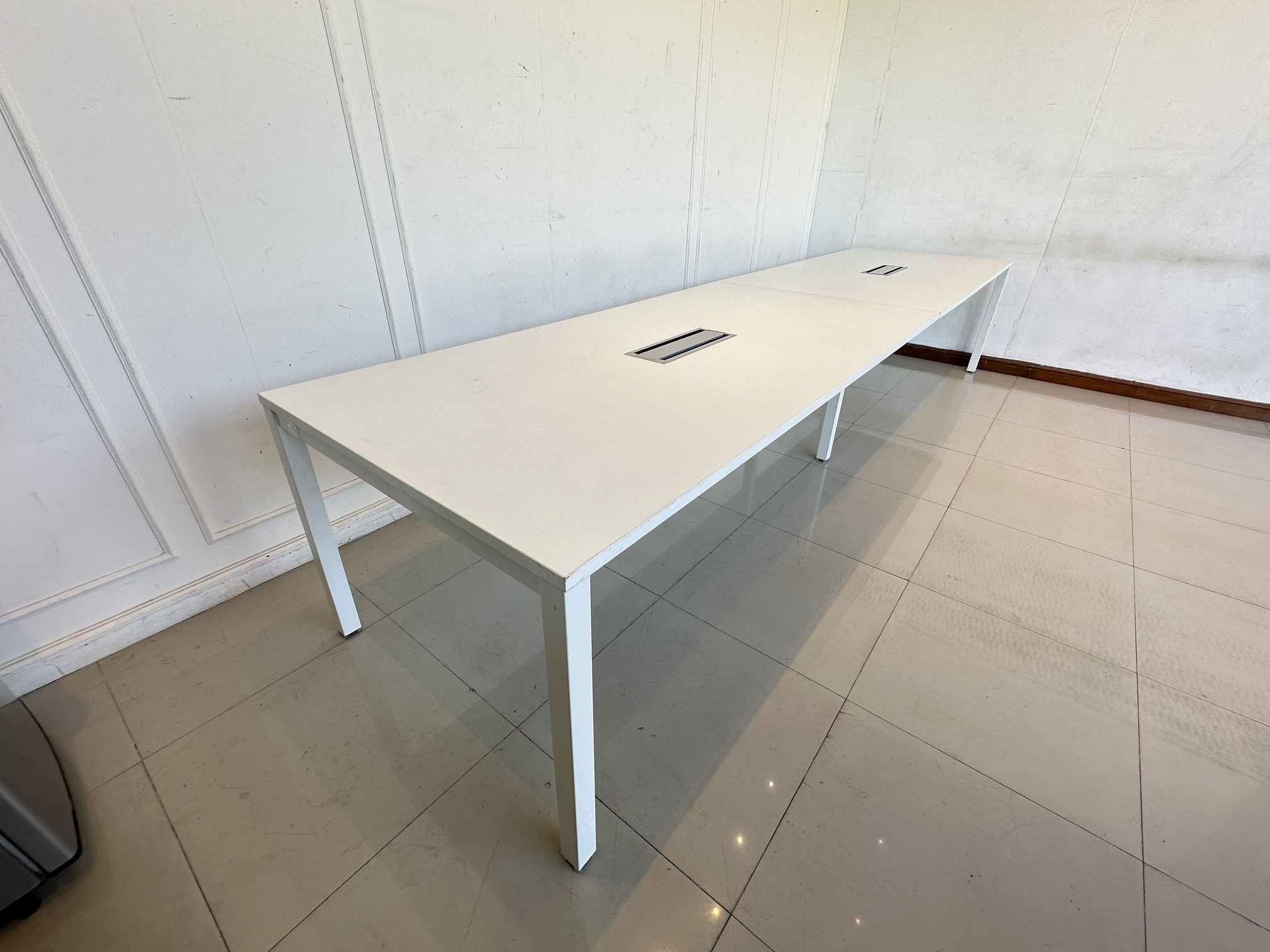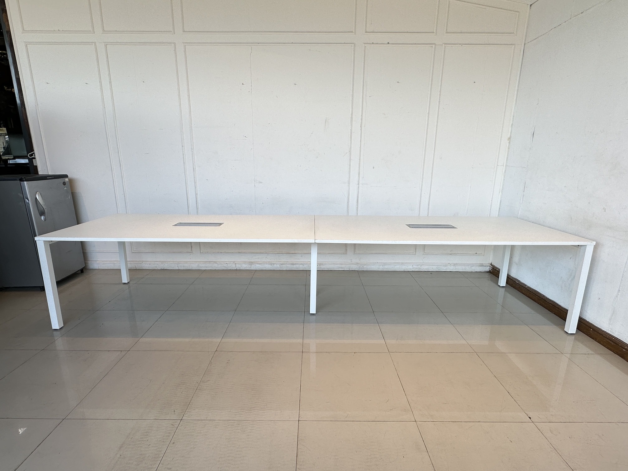 โต๊ะประชุม 10 ที่นั่ง ท็อปไม้ MDF มีรางปลั๊ก โครงขาเหล็กสีขาว