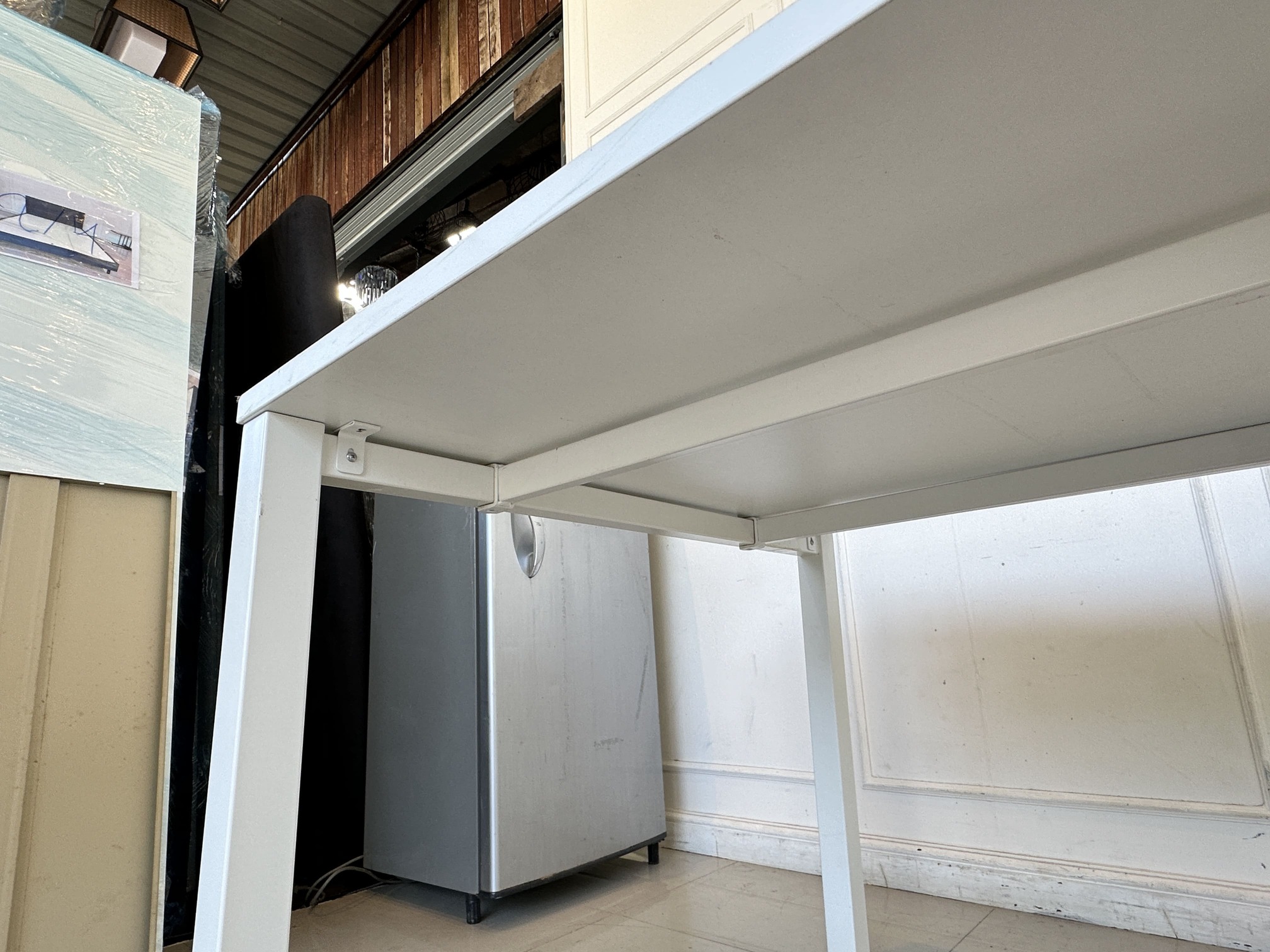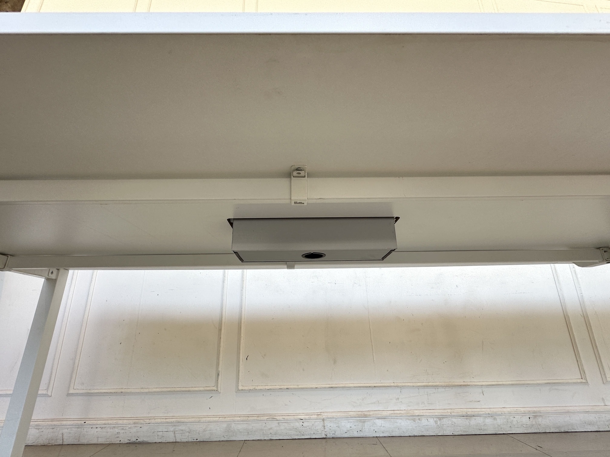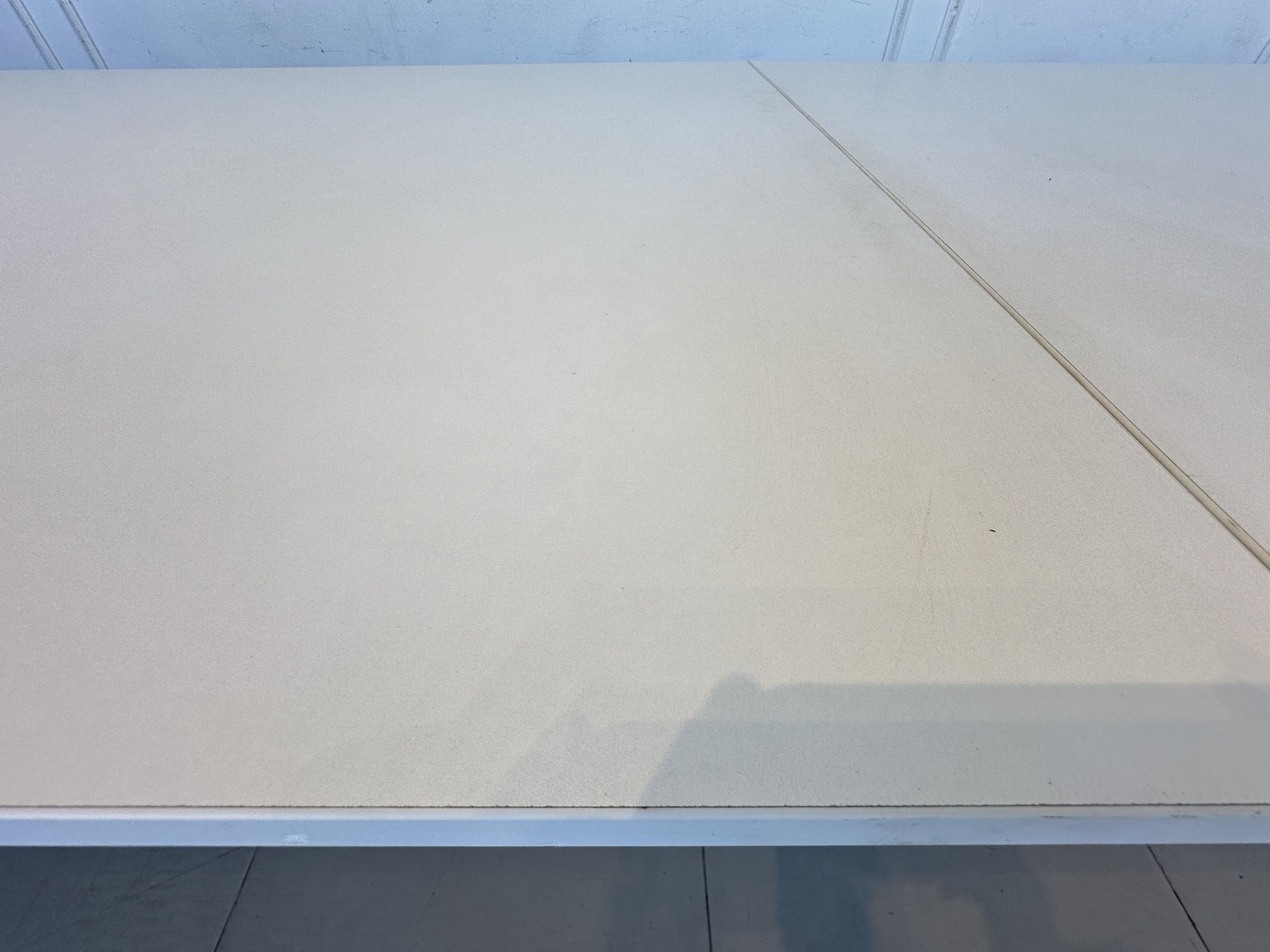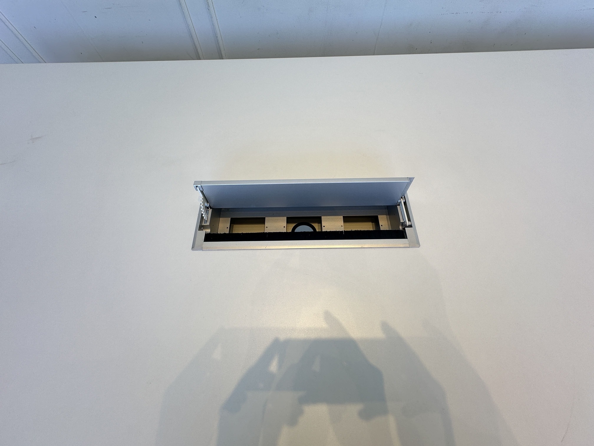 โต๊ะประชุม 10 ที่นั่ง ท็อปไม้ MDF มีรางปลั๊ก โครงขาเหล็กสีขาว