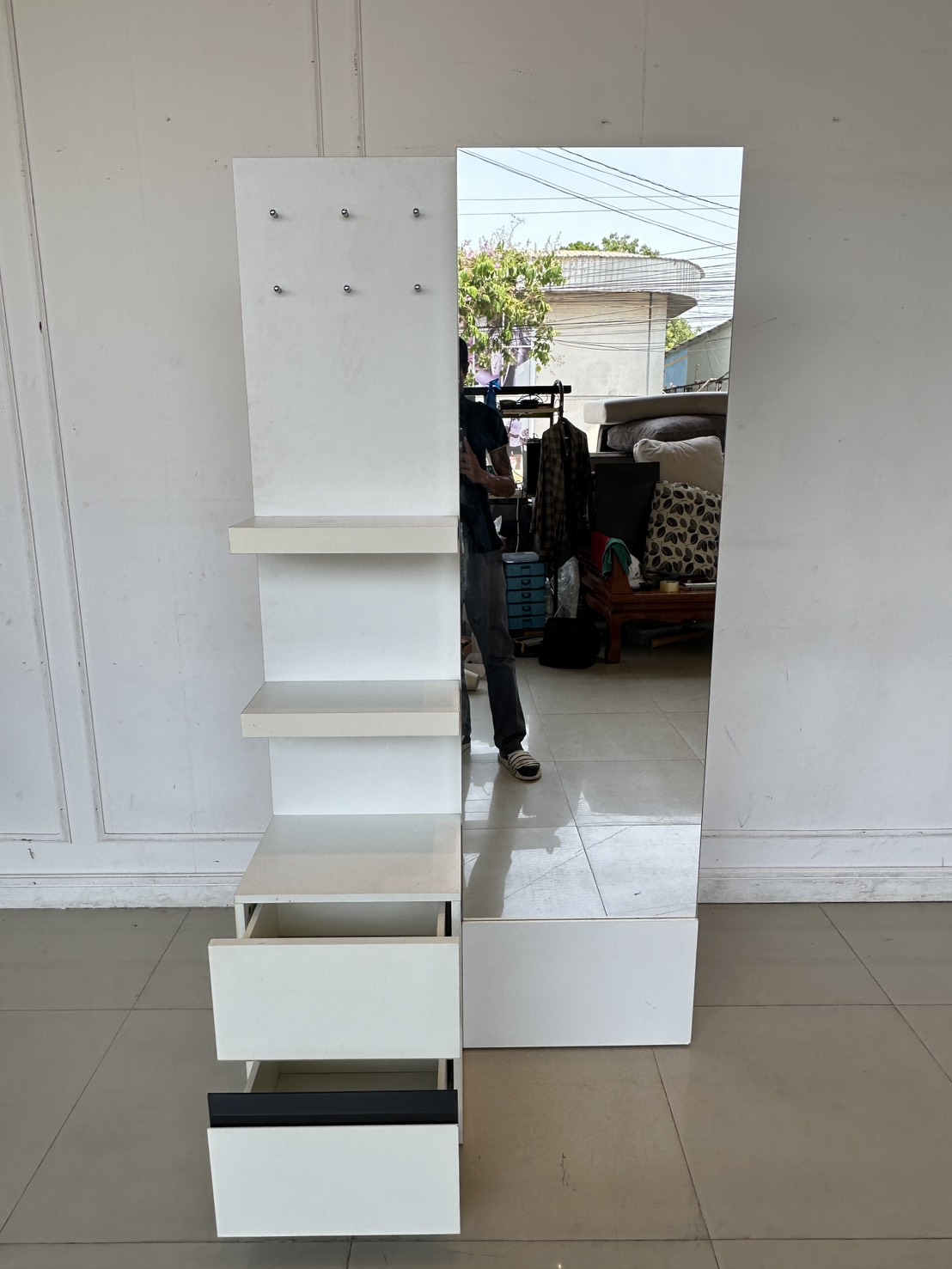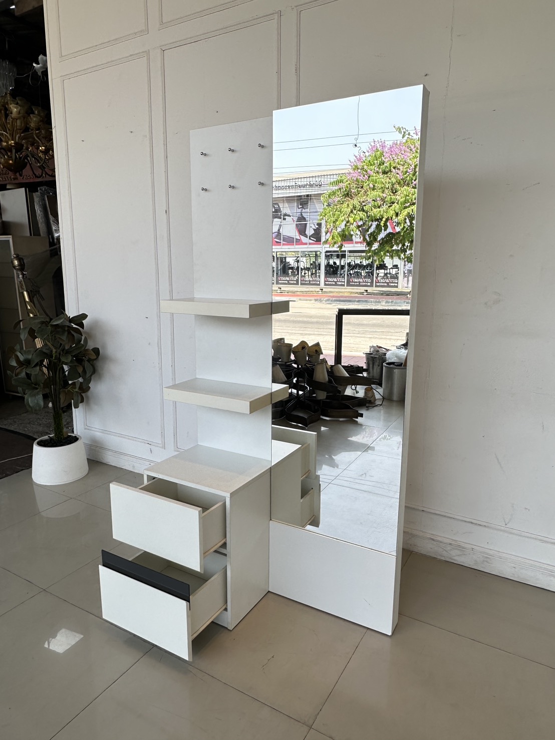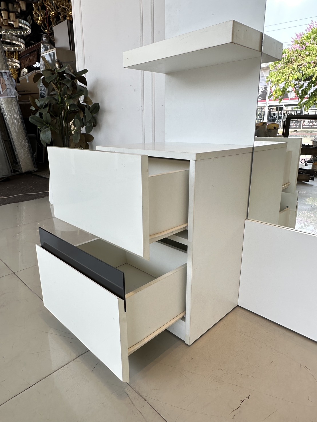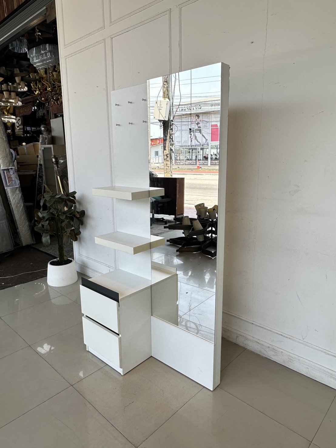 โต๊ะเครื่องแป้ง แบบยืน 2 ชั้นวาง 2 ลิ้นชักโครงไม้ MDF สีขาว