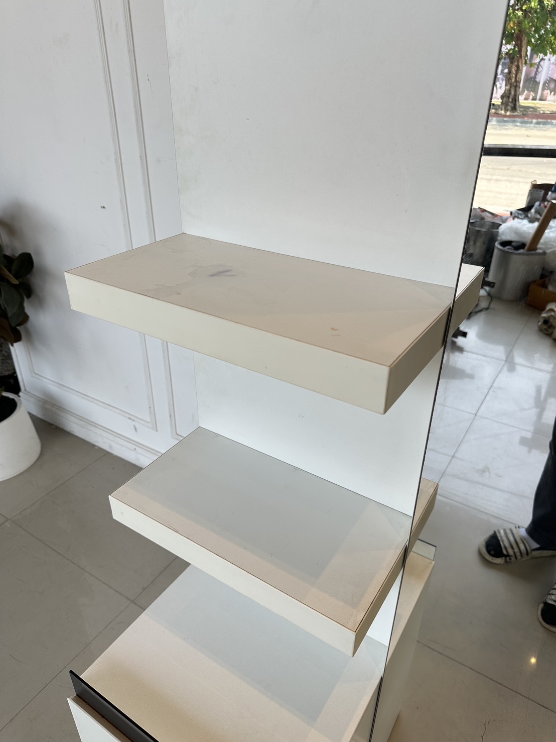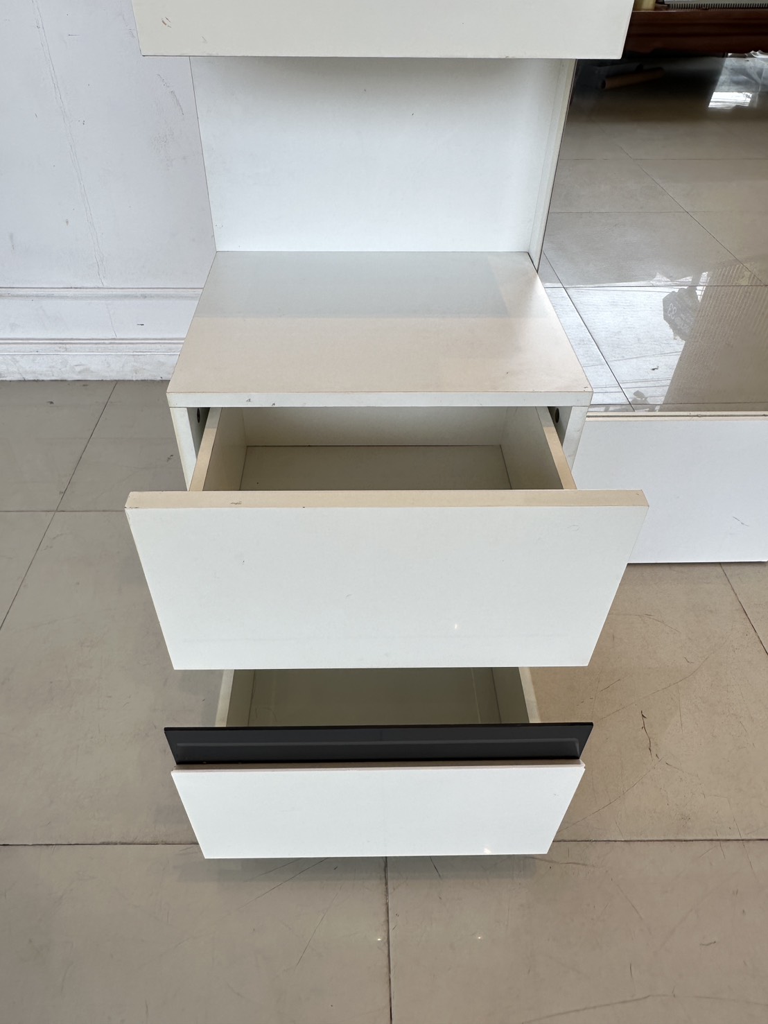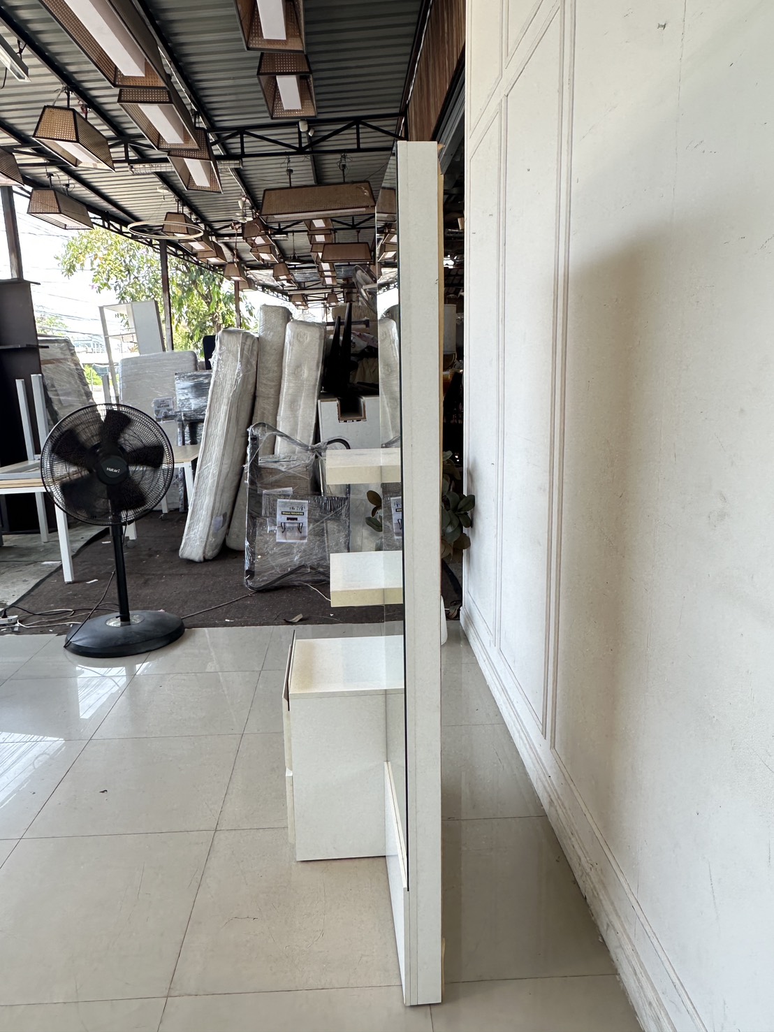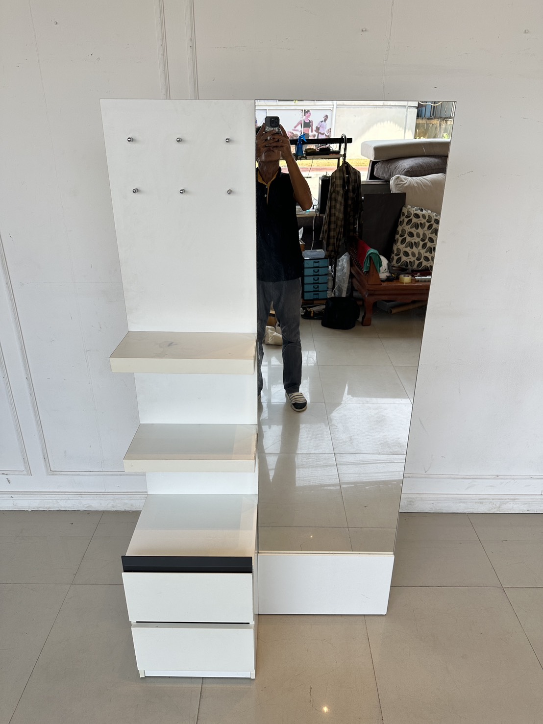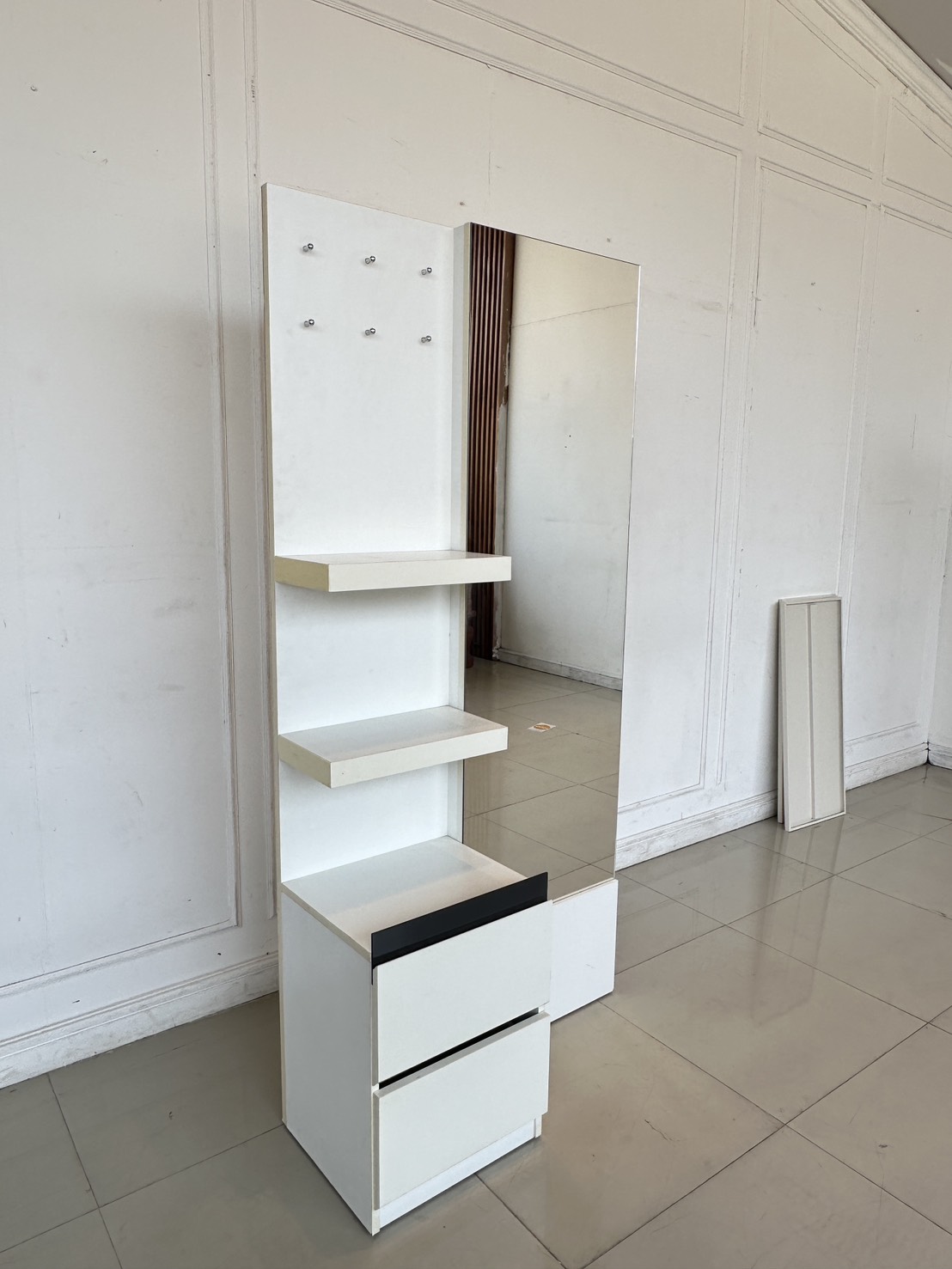 โต๊ะเครื่องแป้ง แบบยืน 2 ชั้นวาง 2 ลิ้นชักโครงไม้ MDF สีขาว