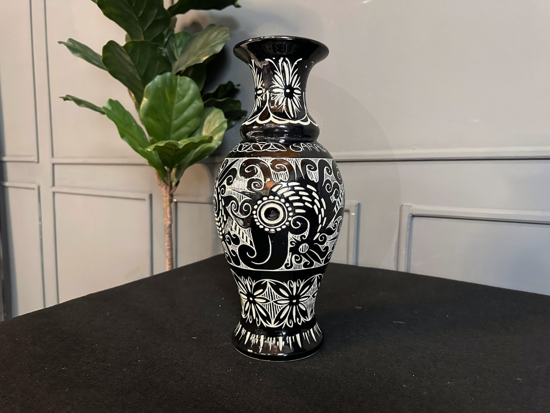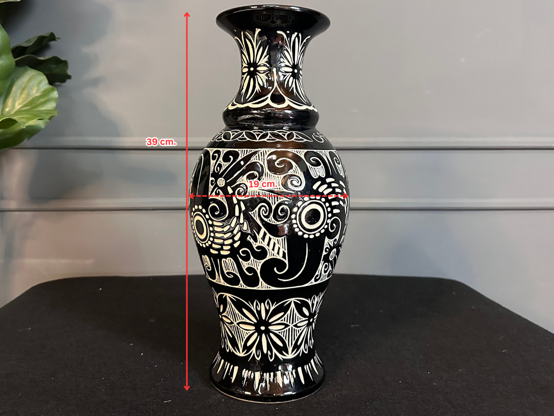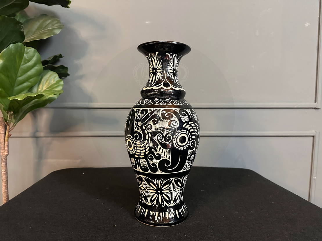 แจกันกระเบื้องเซรามิกสีดำลายดอกไม้ Made In Malaysia