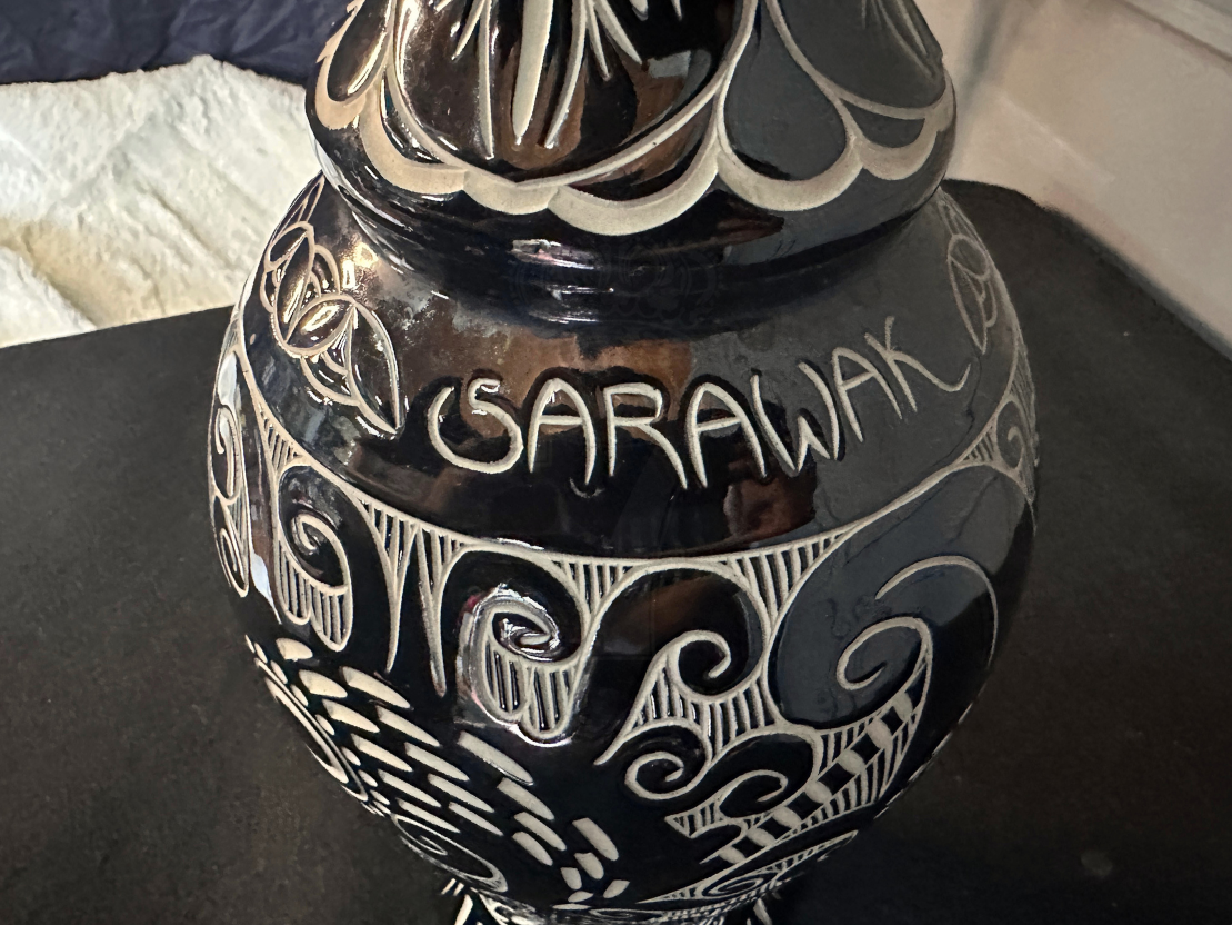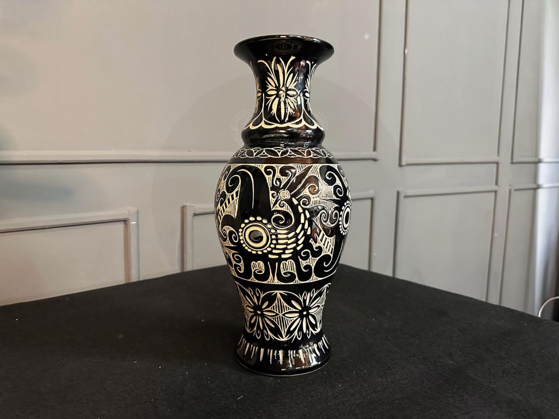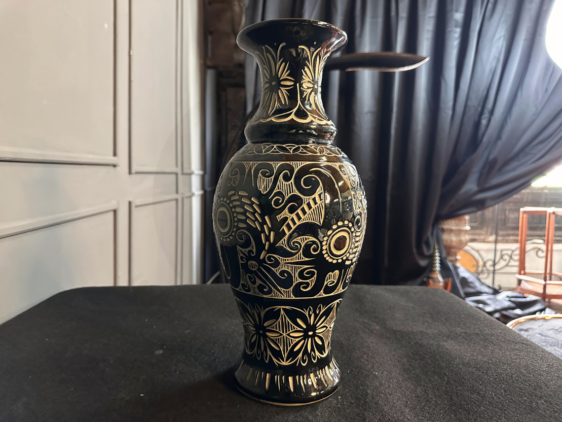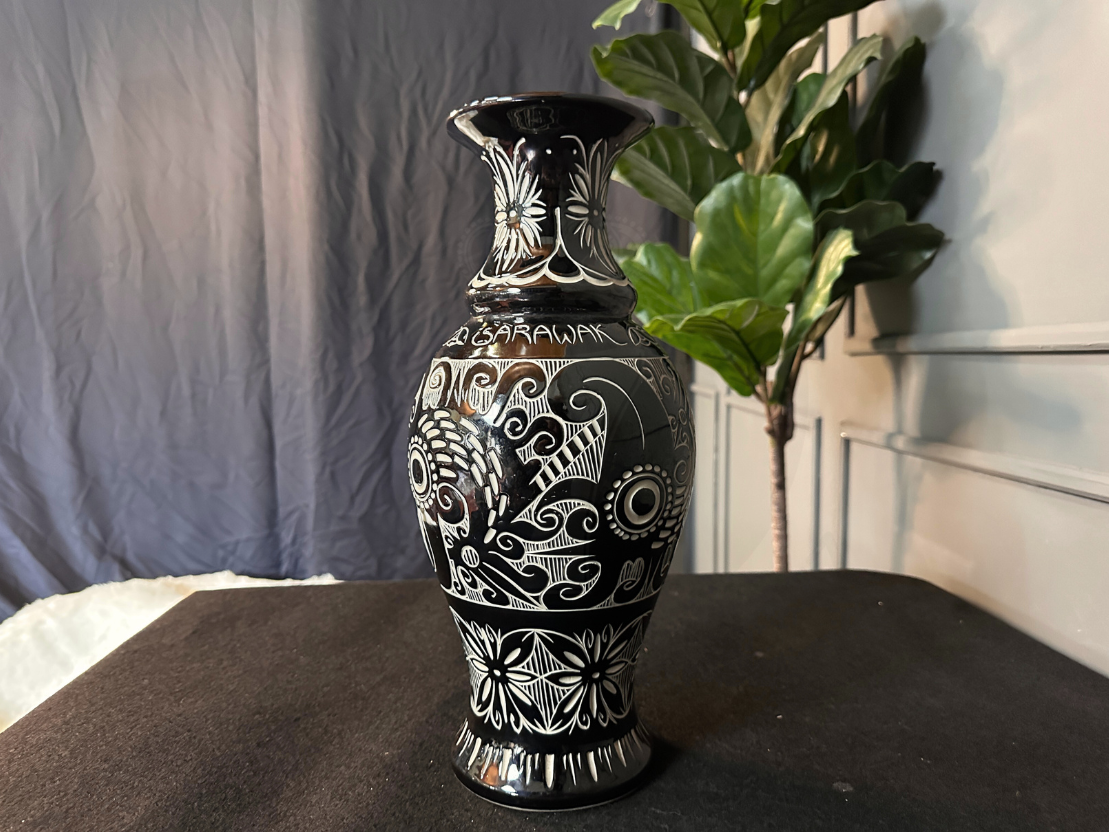 แจกันกระเบื้องเซรามิกสีดำลายดอกไม้ Made In Malaysia