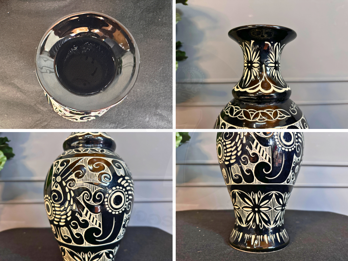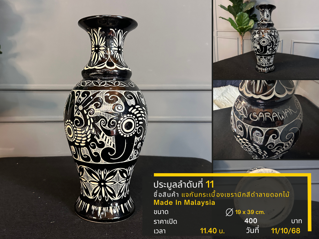 11 แจกันกระเบื้องเซรามิกสีดำลายดอกไม้ Made In Malaysia