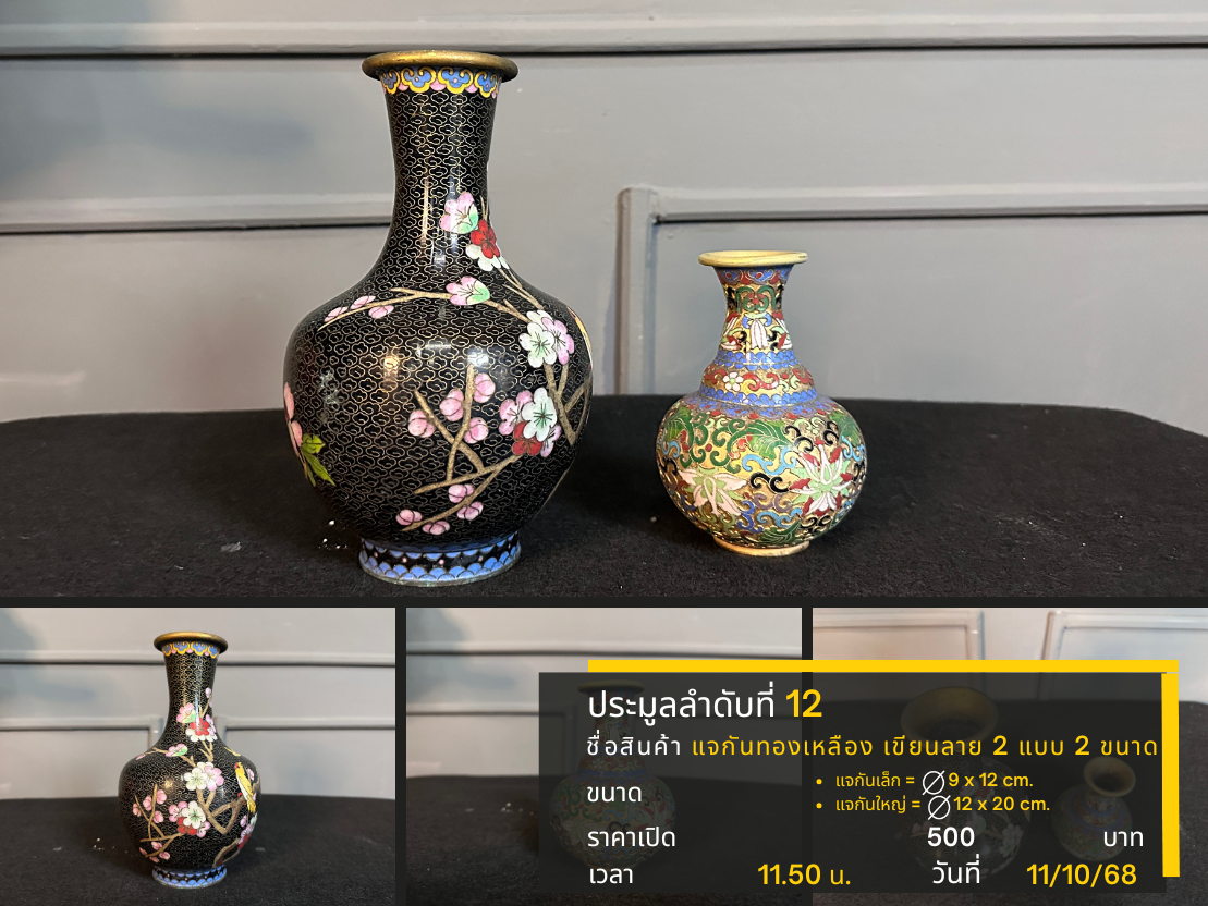 12 แจกันทองเหลือง เขียนลาย 2 แบบ 2 ขนาด