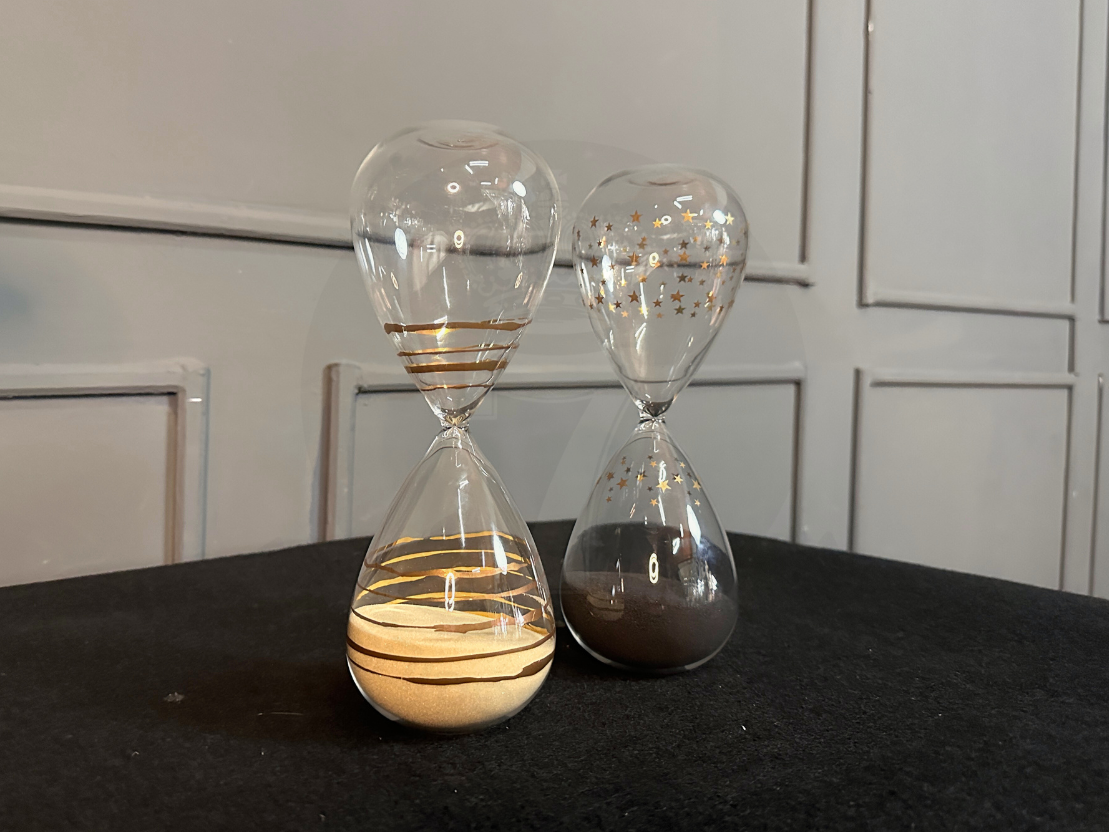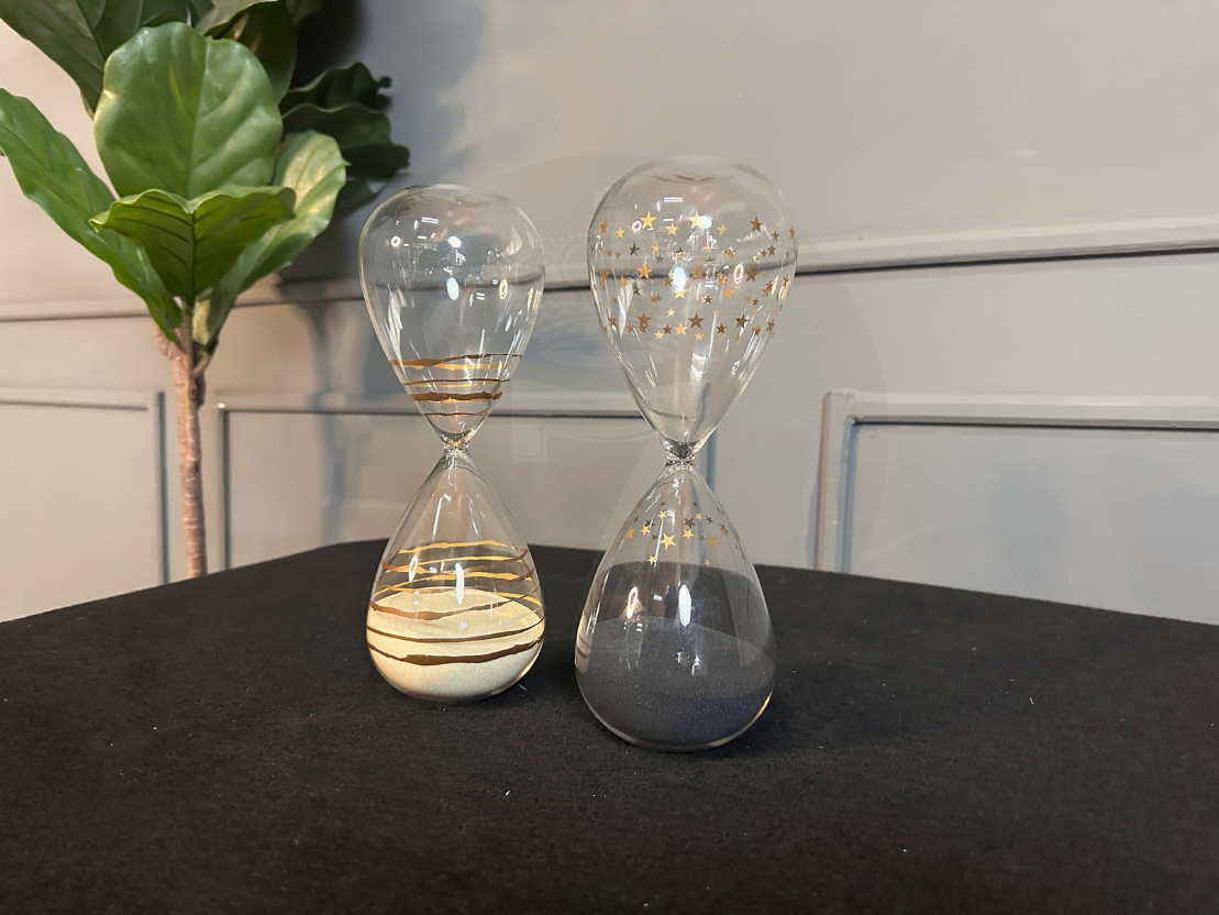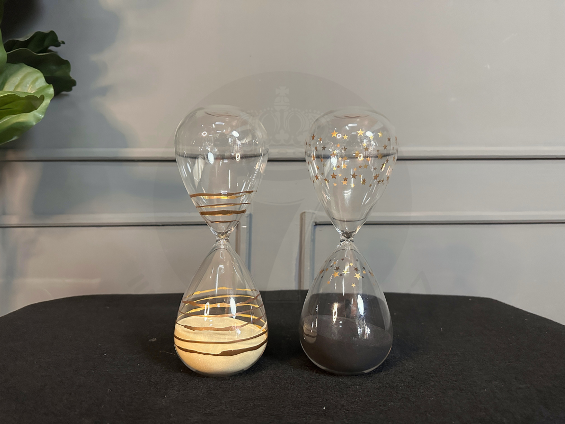 นาฬิกาทรายแก้ว เพ้นท์ลายสีโกลด์ 1 คู่