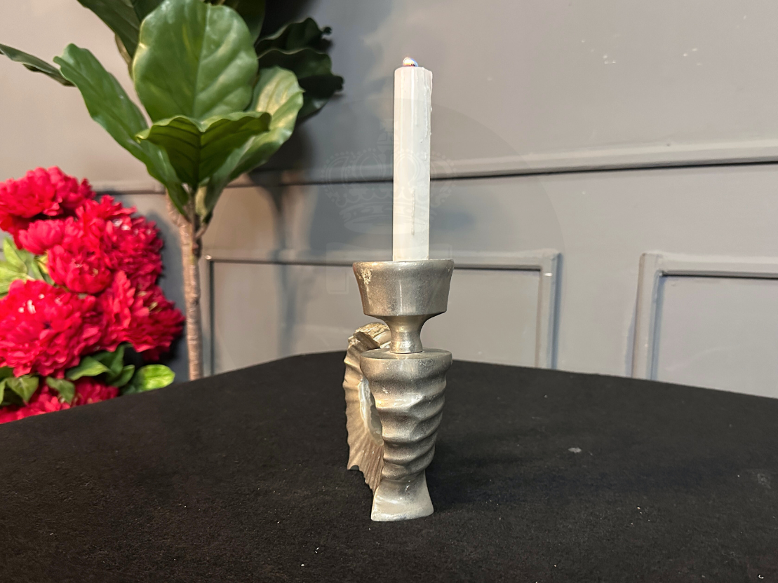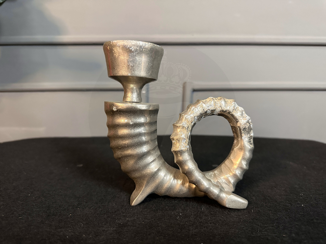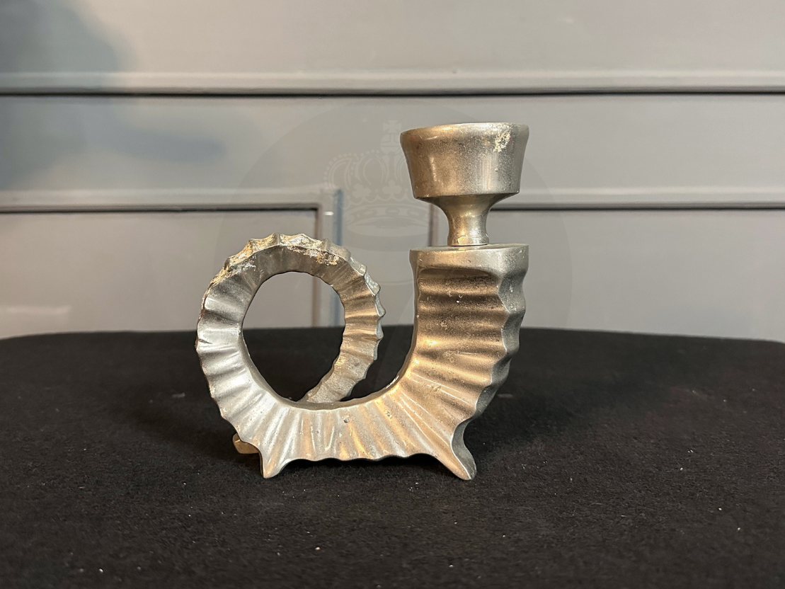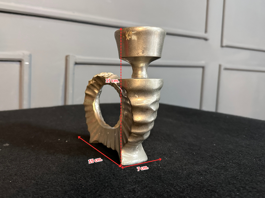 เชิงเทียนอะลูมิเนียมหล่อรูปเขาแพะ (มีรอยขี้เกลือตามภาพและไม่รวมเทียน)