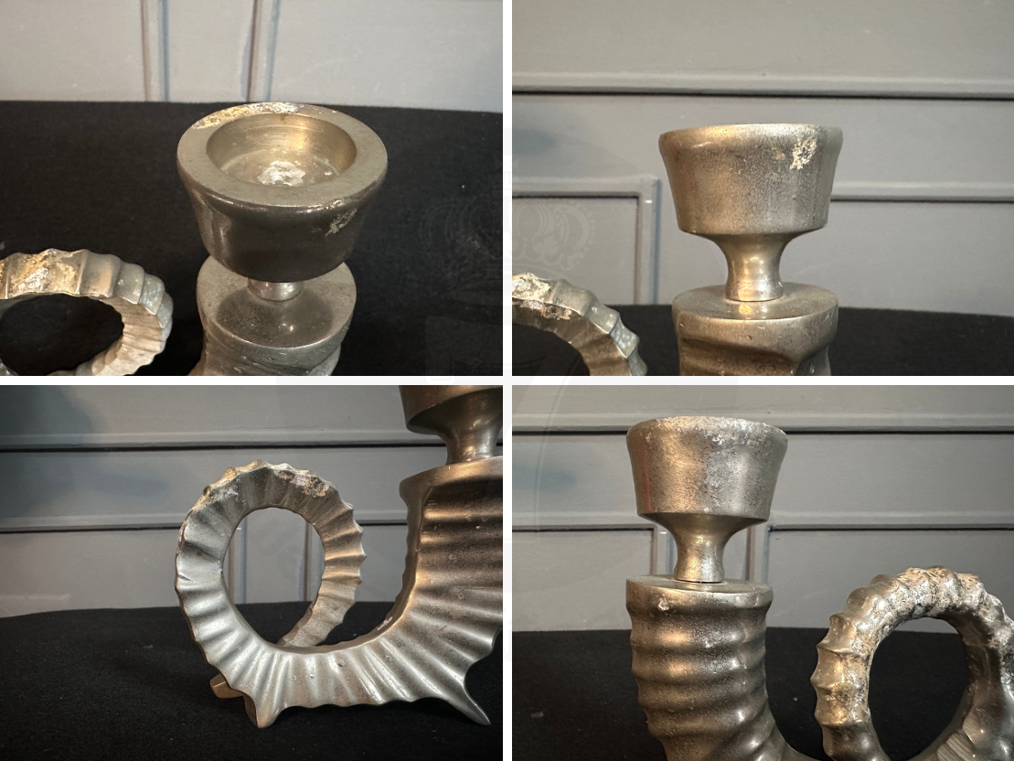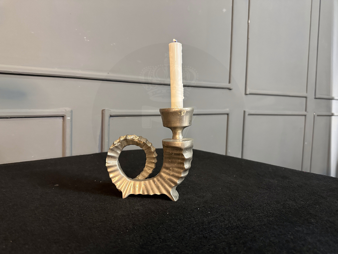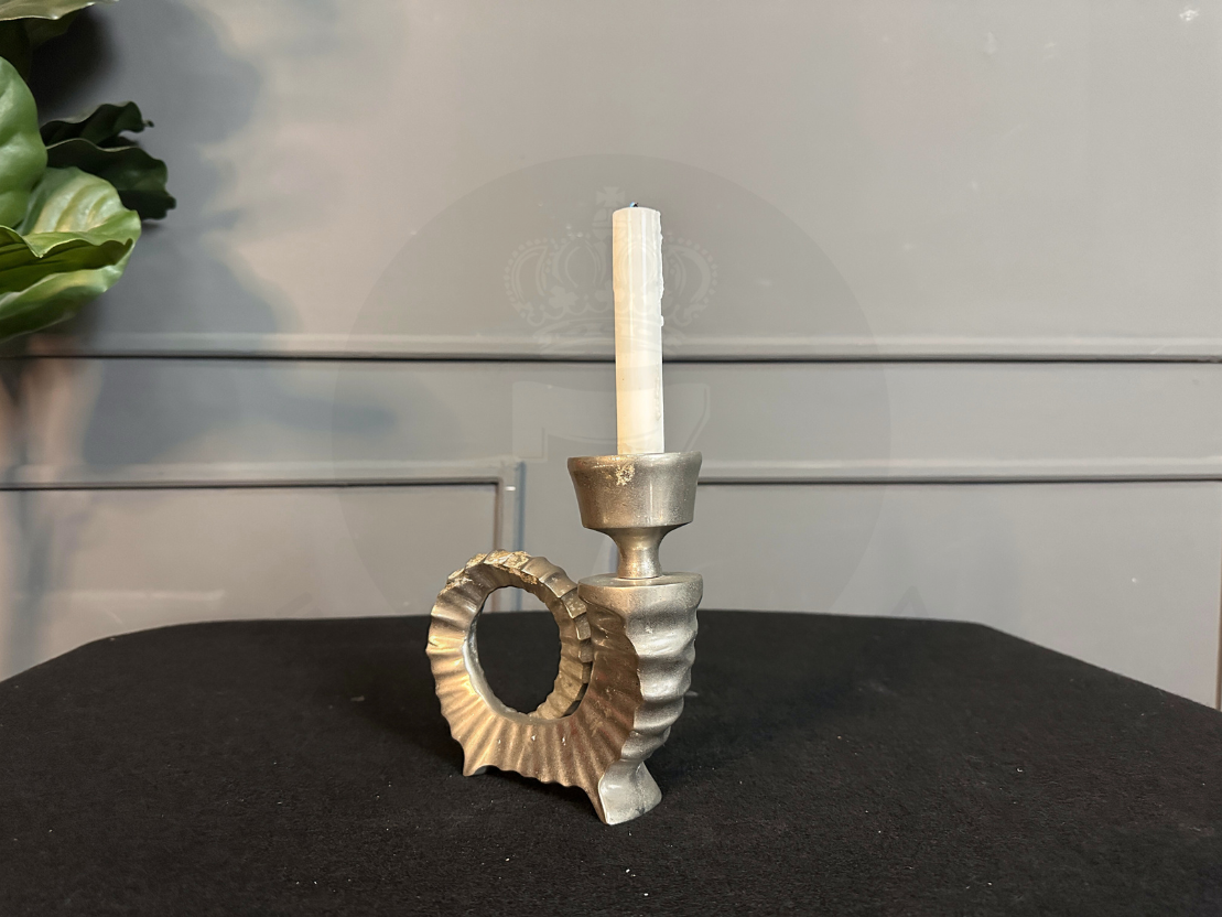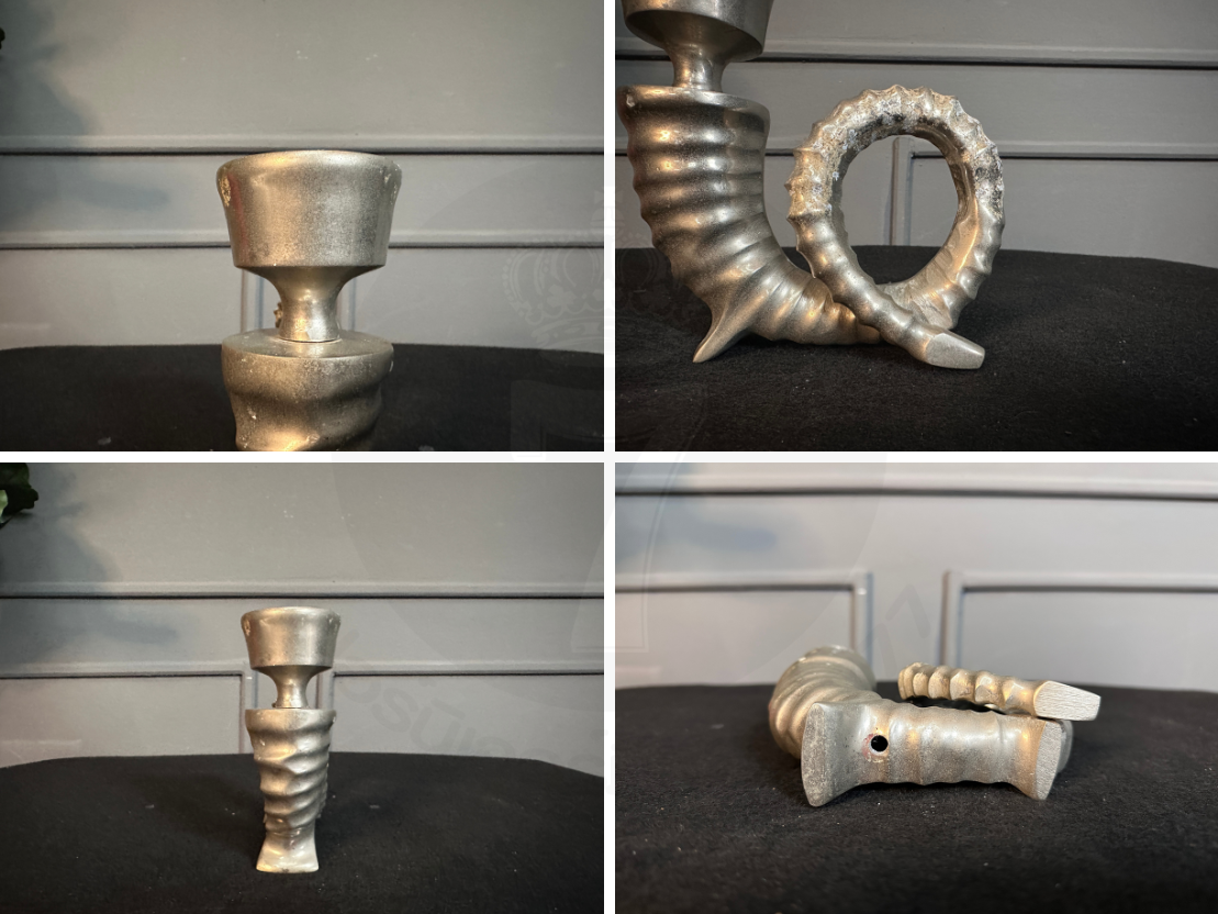 เชิงเทียนอะลูมิเนียมหล่อรูปเขาแพะ (มีรอยขี้เกลือตามภาพและไม่รวมเทียน)