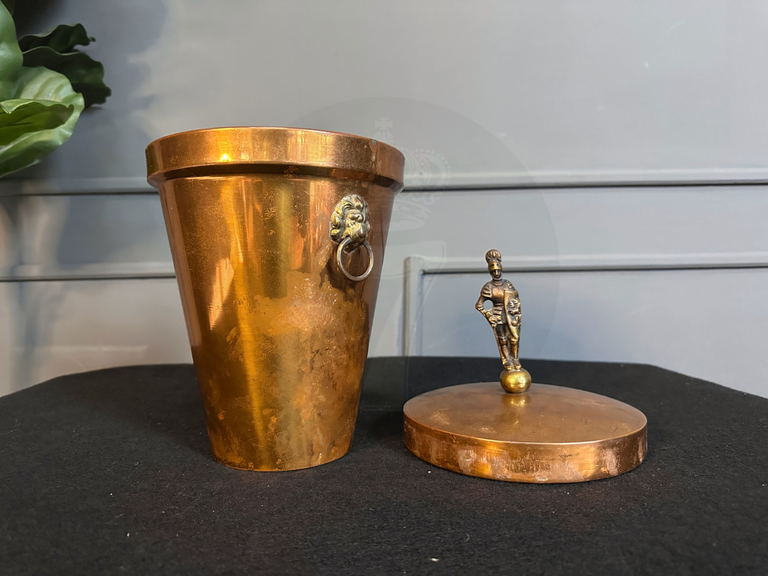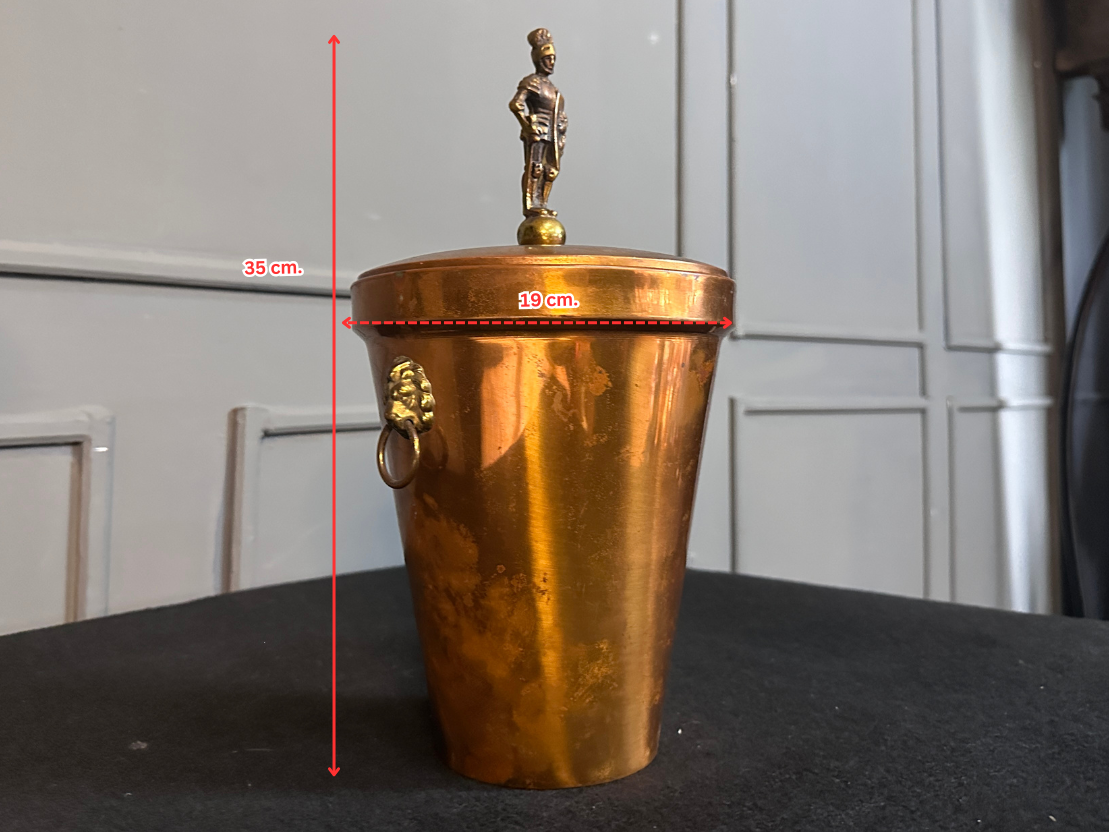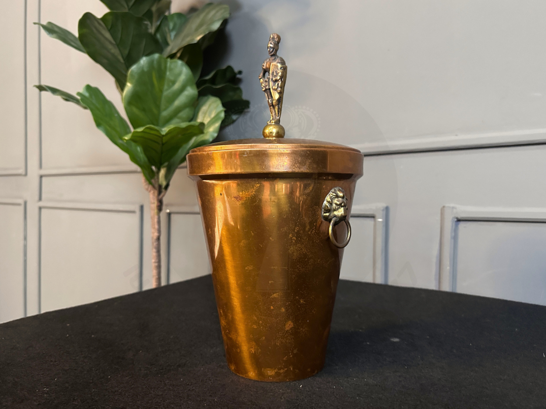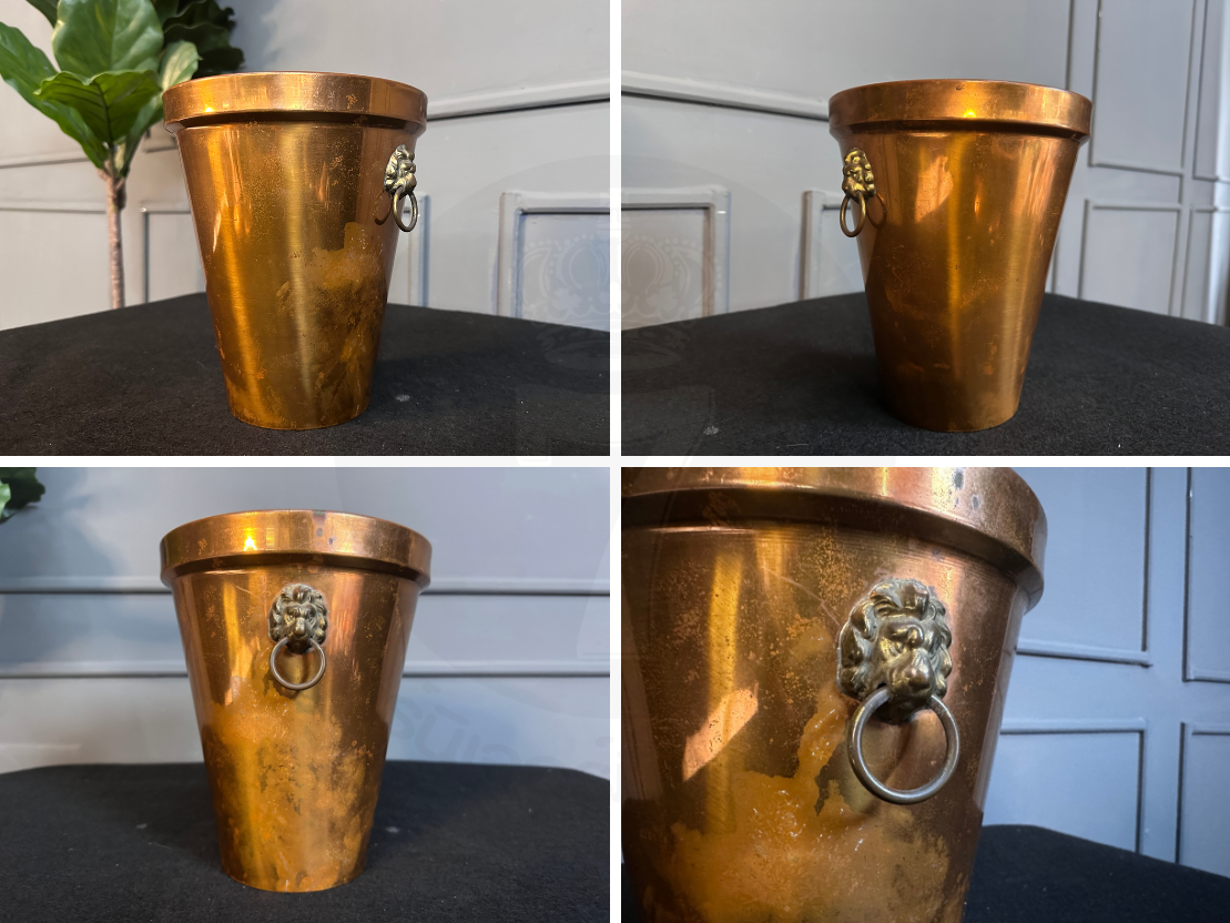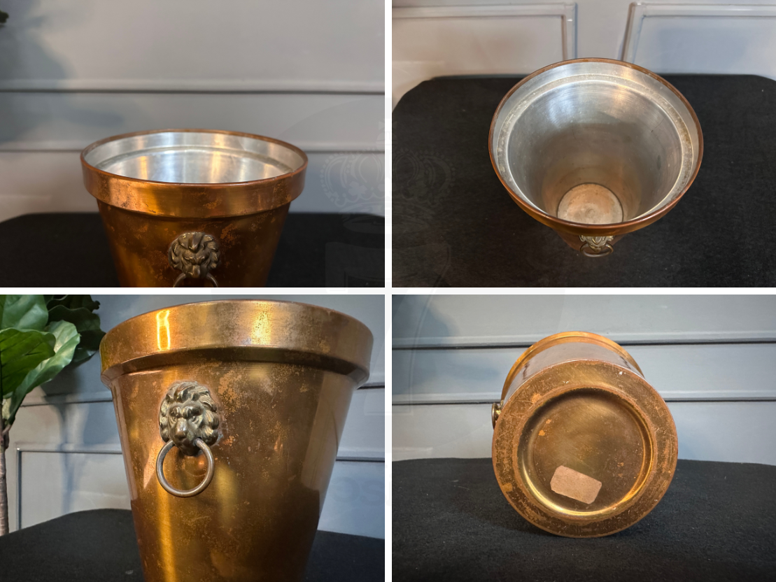 ถังแช่ไวน์สแตนเลสบุทองแดง ประดับทองเหลือง แบรนด์ D.M.I. Made in England (มีคราบและรอยตามภาพ)