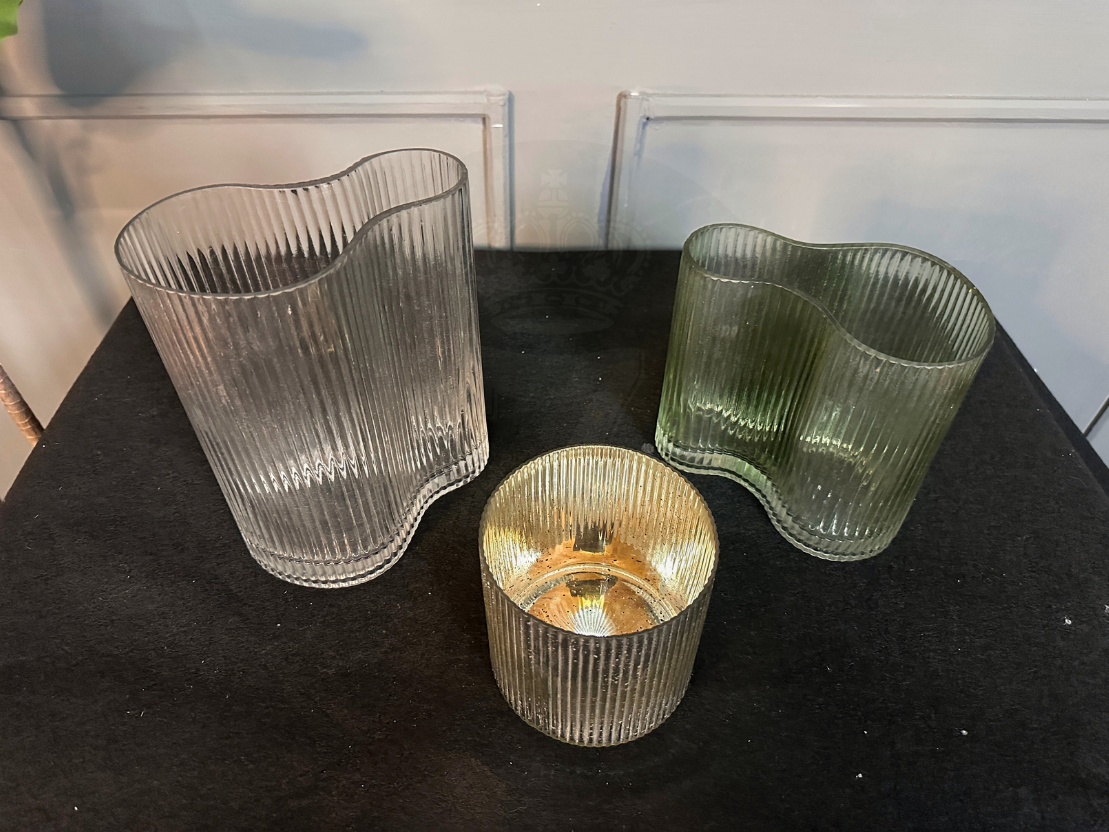 เซตแจกันแก้ว 3 แบบ 3 ขนาด (มีรอยรอบๆตามภาพ)