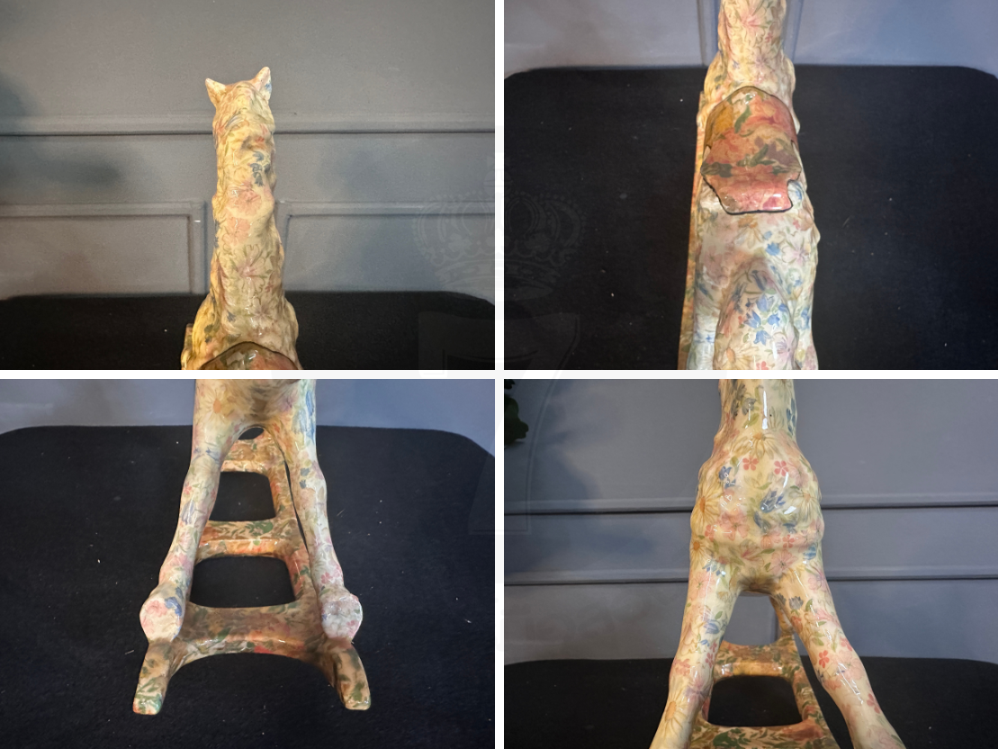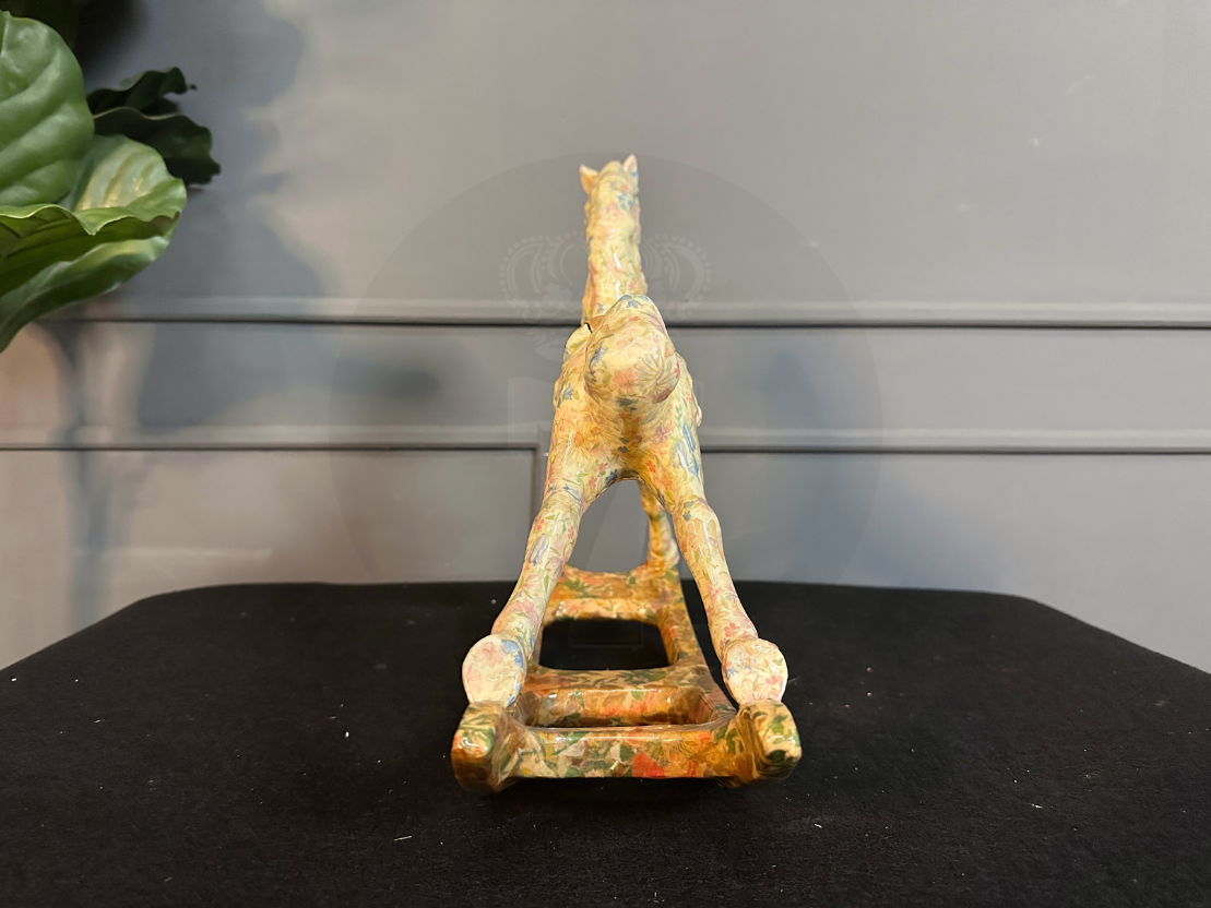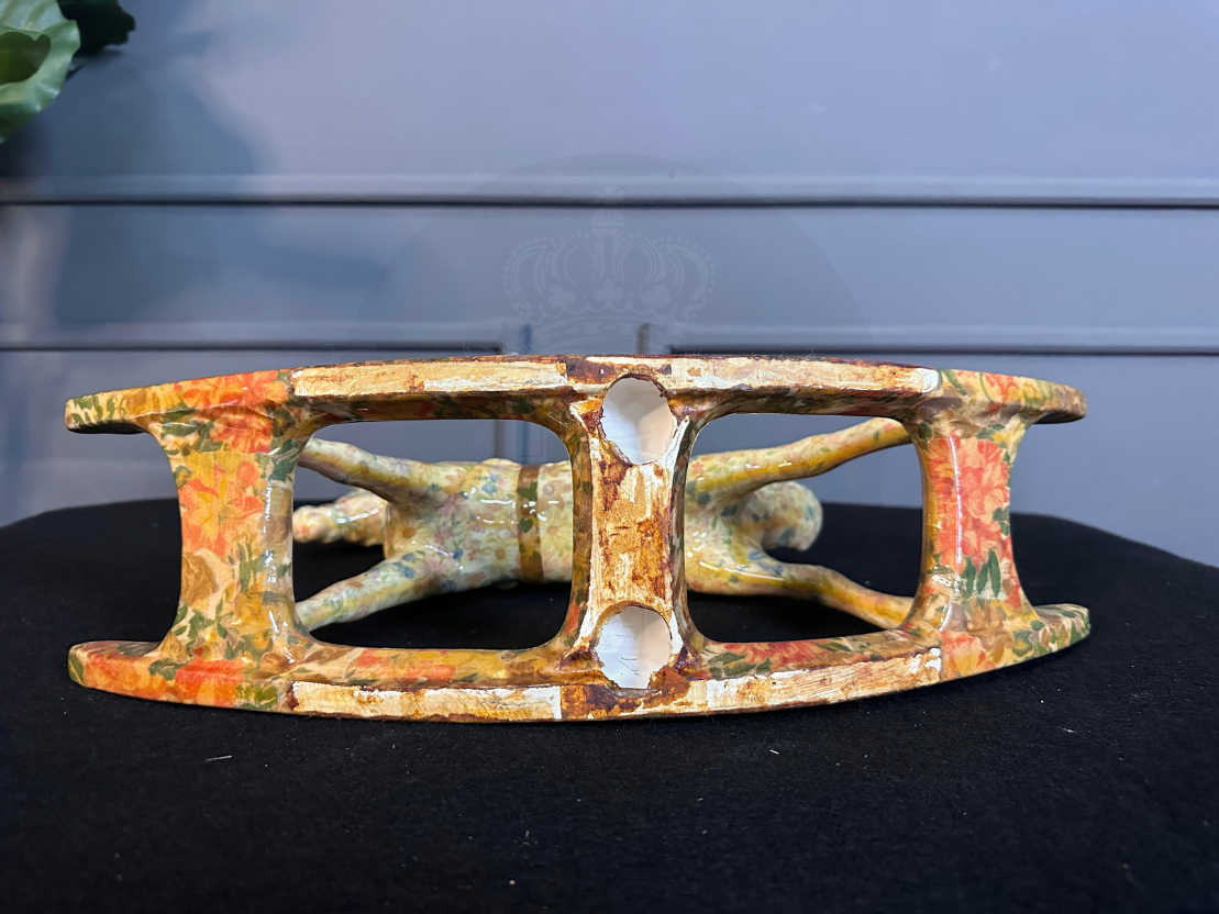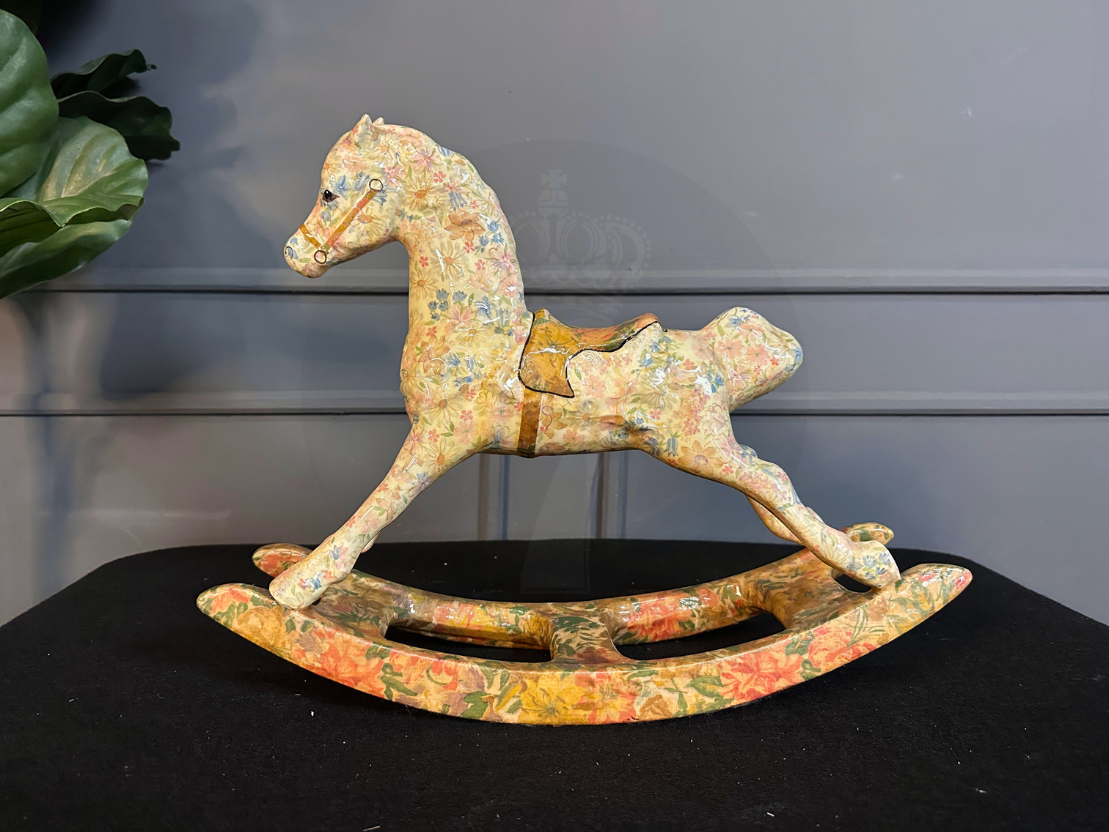 รูปปั้นม้าโยกเซรามิกลายดอกไม้ (มีรอยเหลืองรอบรอบตามภาพ)