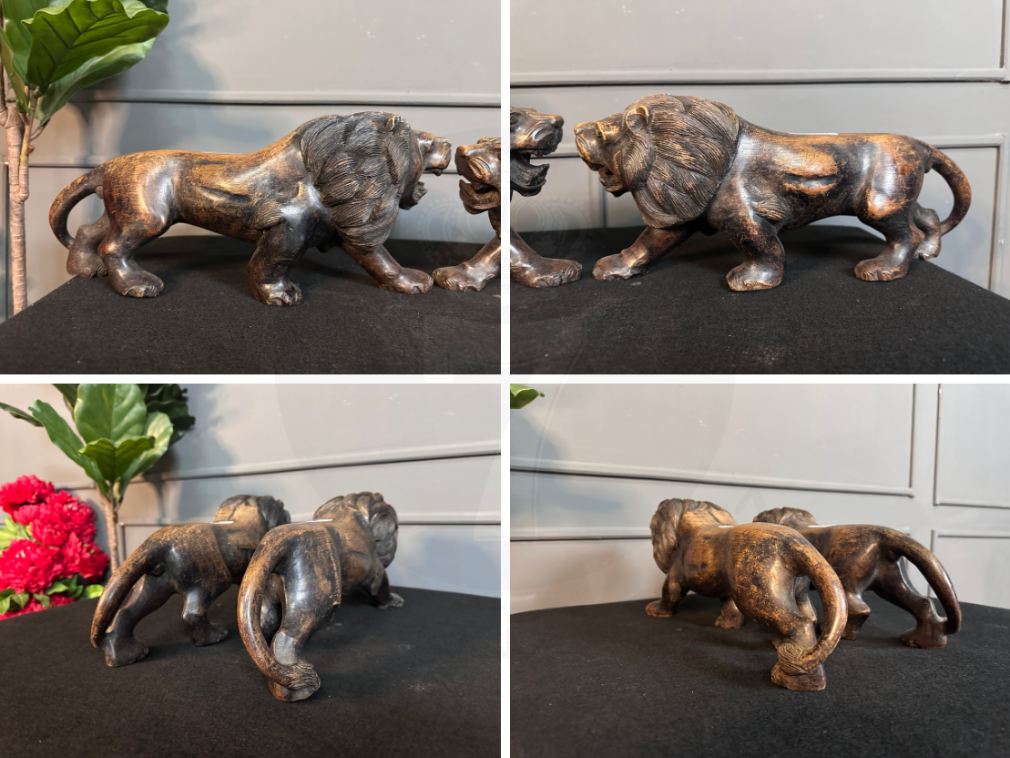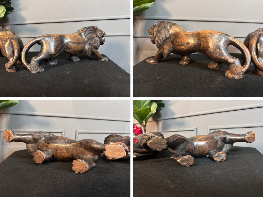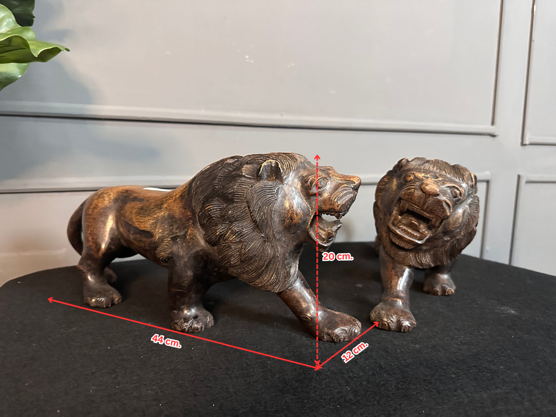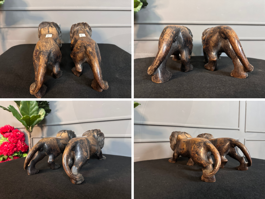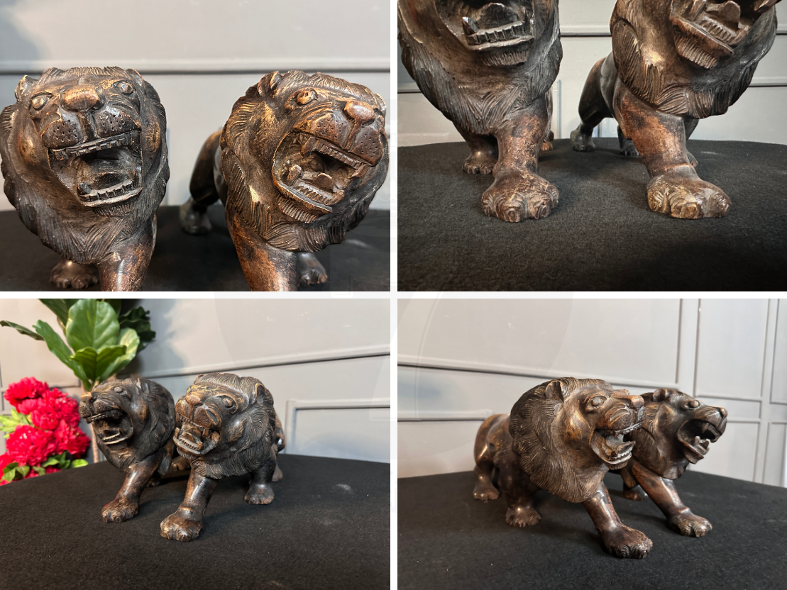 รูปปั้นสิงโตไม้แกะสลัก 1 คู่ (มีรอยตามภาพ)