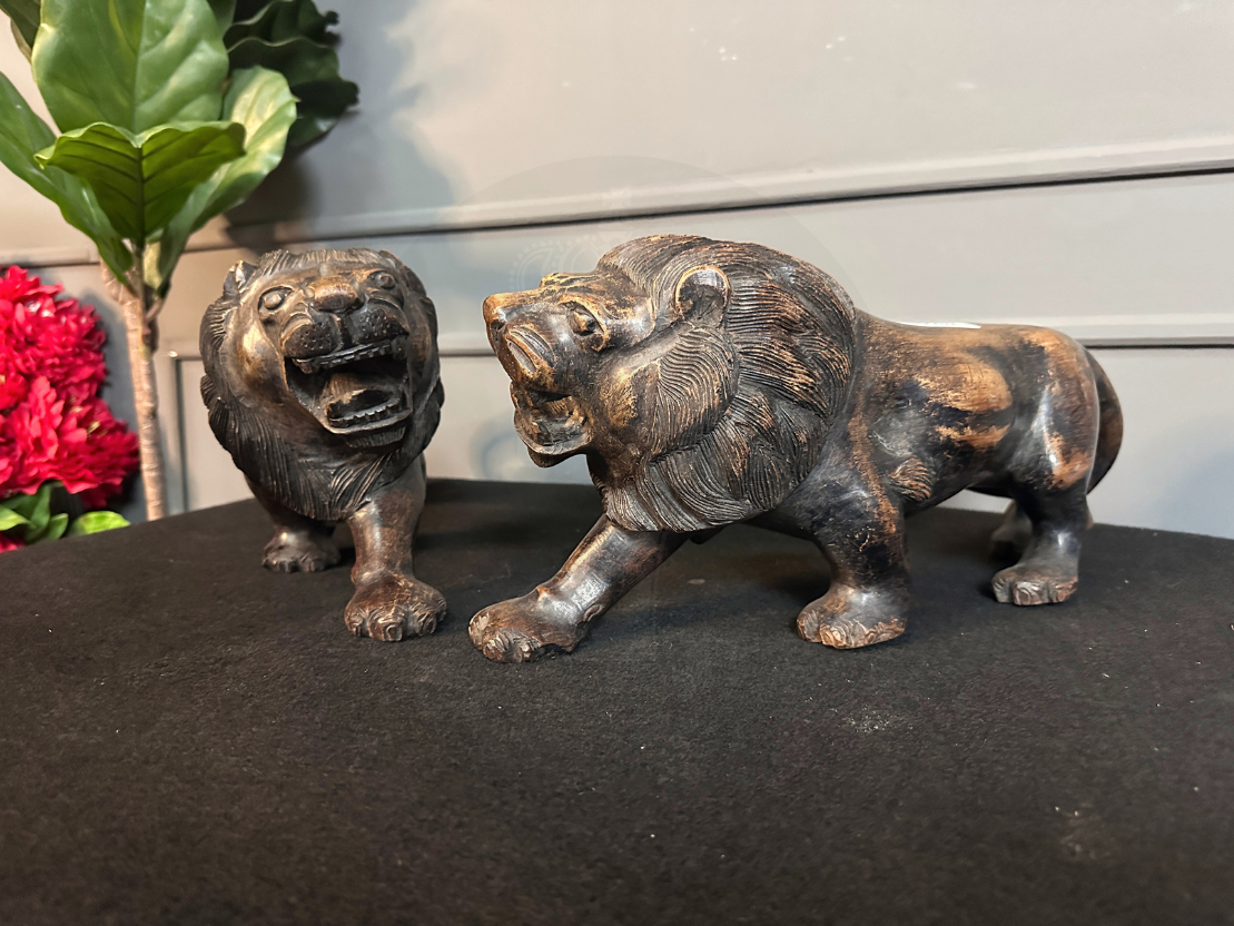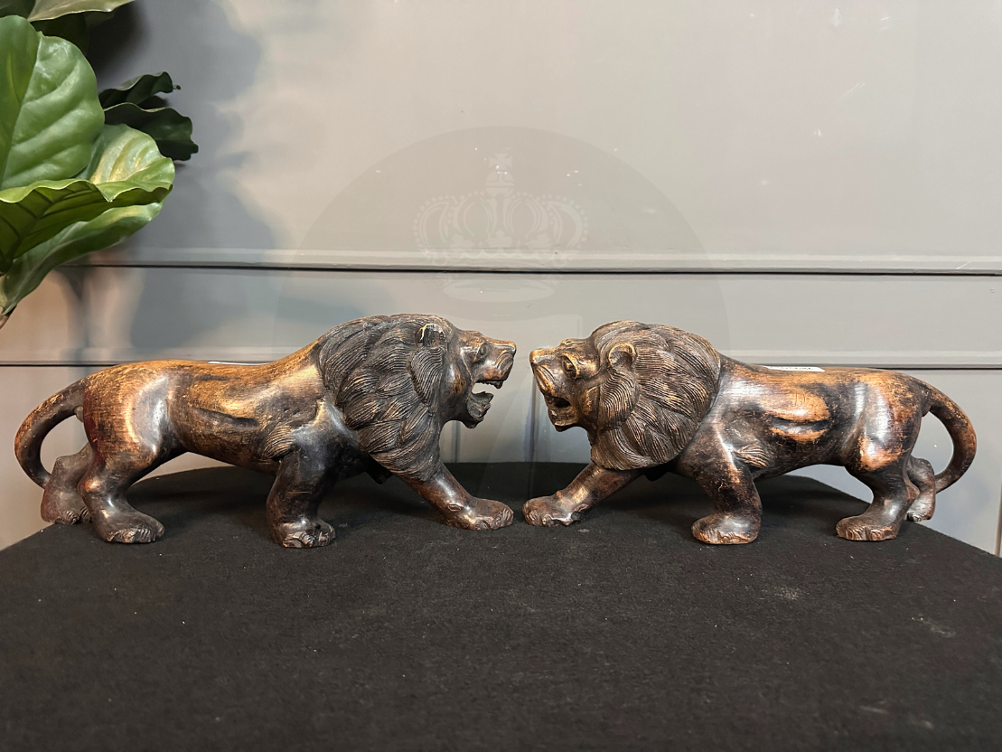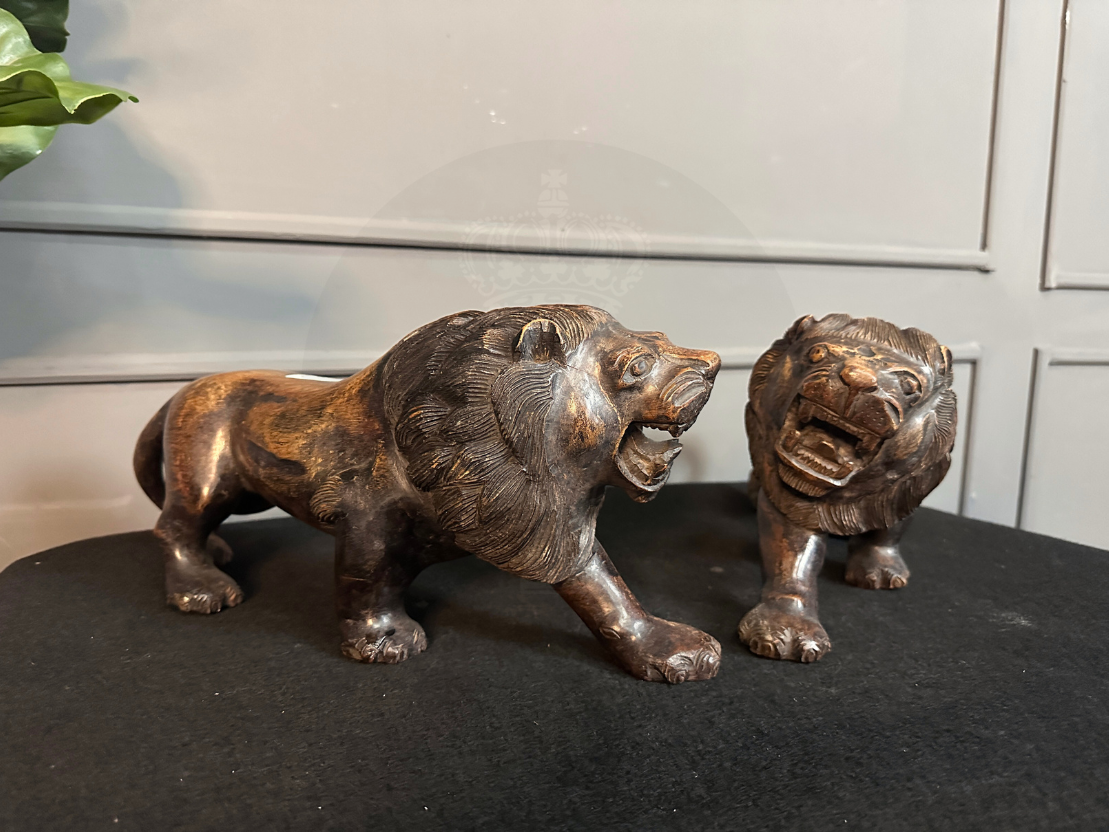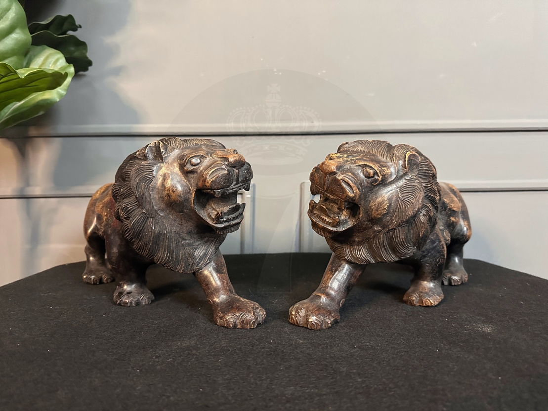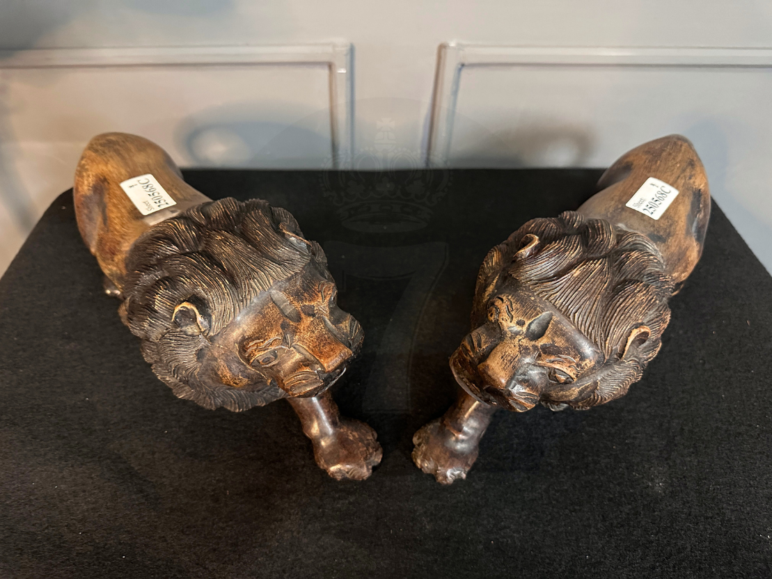 รูปปั้นสิงโตไม้แกะสลัก 1 คู่ (มีรอยตามภาพ)