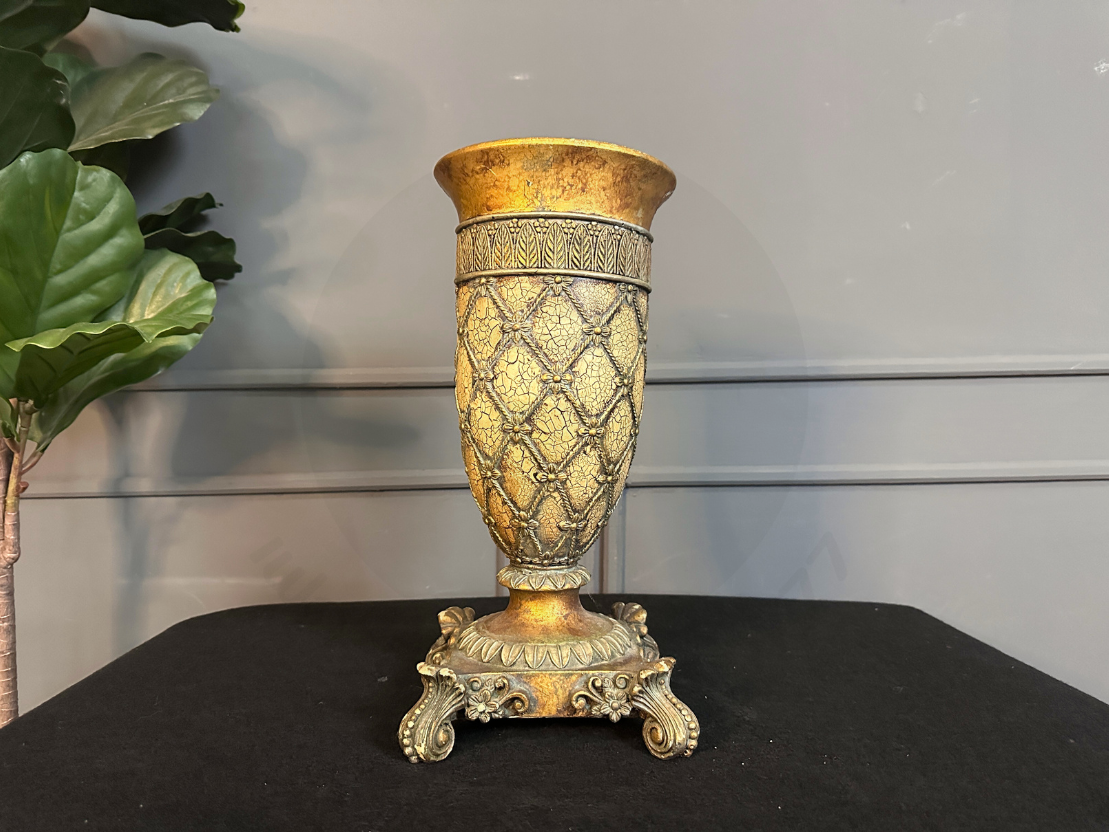 แจกันเรซิ่น สไตล์วินเทจ เมดิเตอร์เรเนียน งานทำเก่า (มีรอยสีลอกตามภาพ)