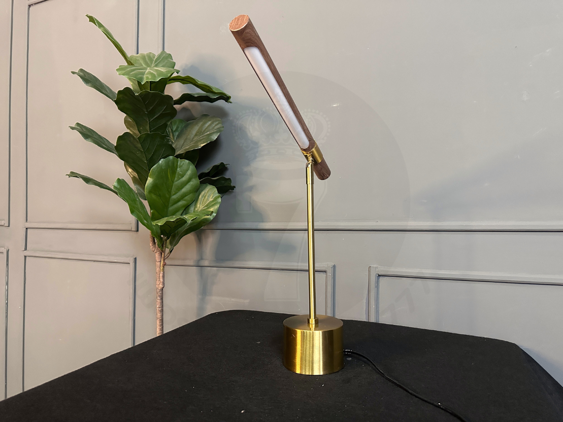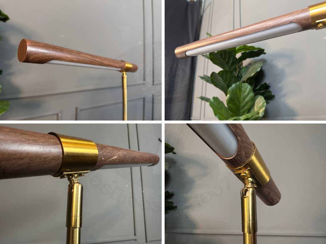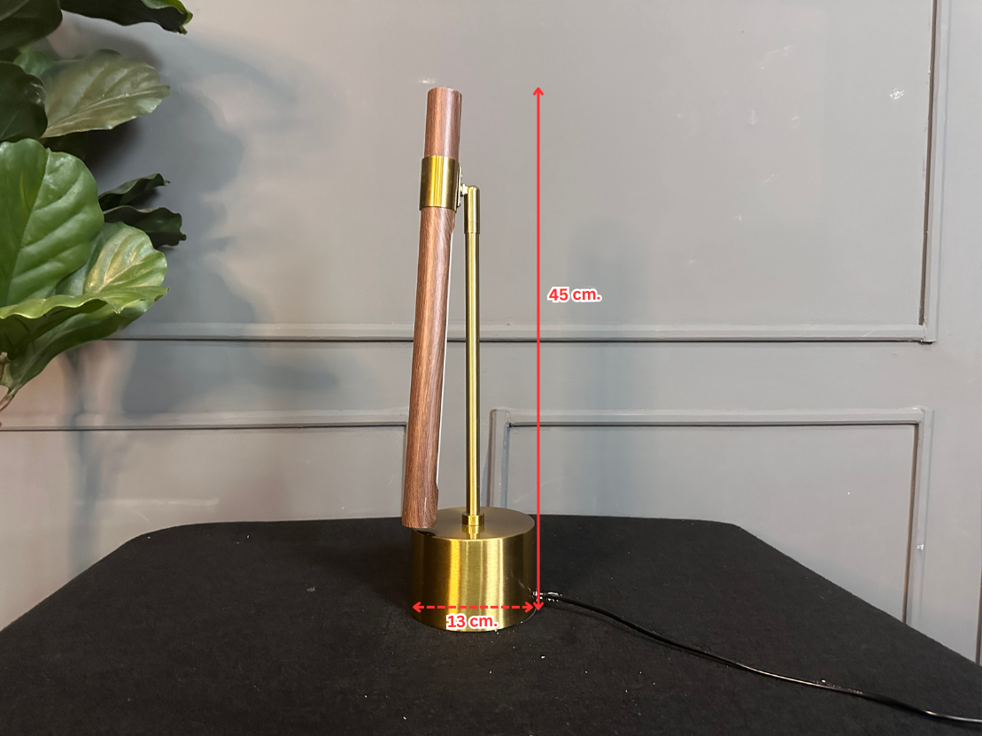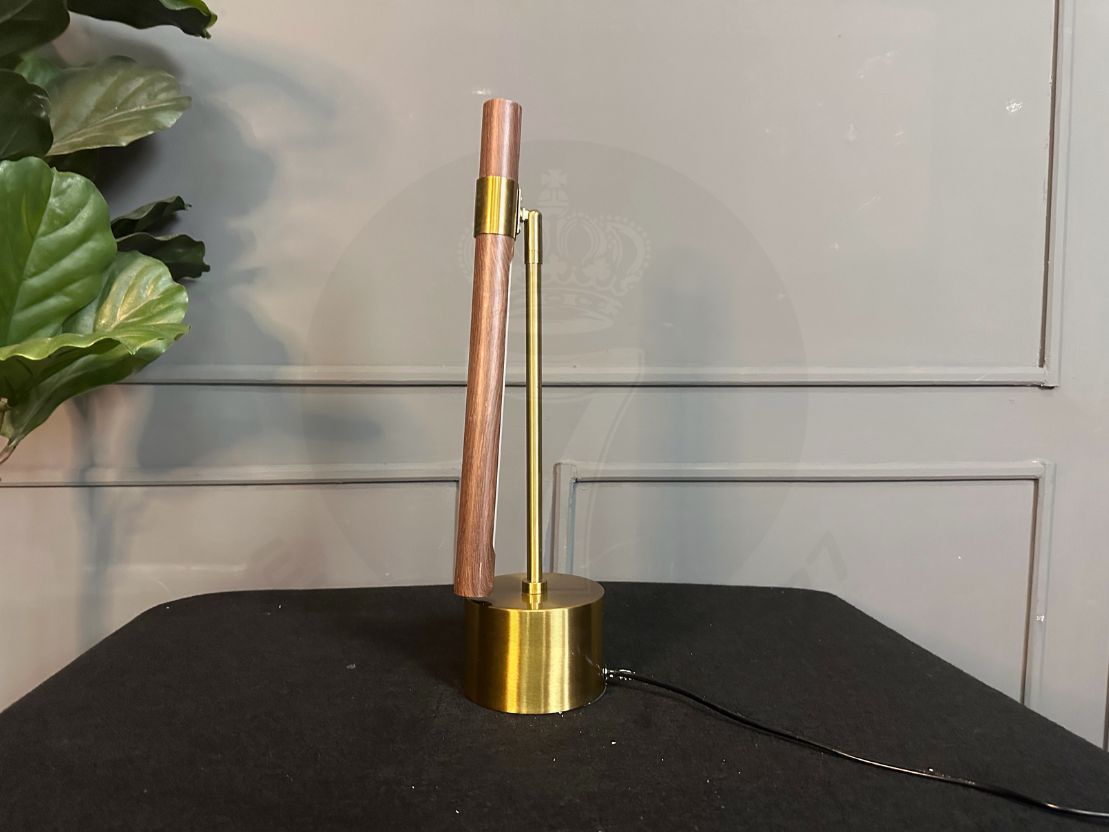โคมไฟตั้งโต๊ะ โป๊ะไม้กลึง พับเก็บได้ ฐานและขา เหล็กสีโกลด์