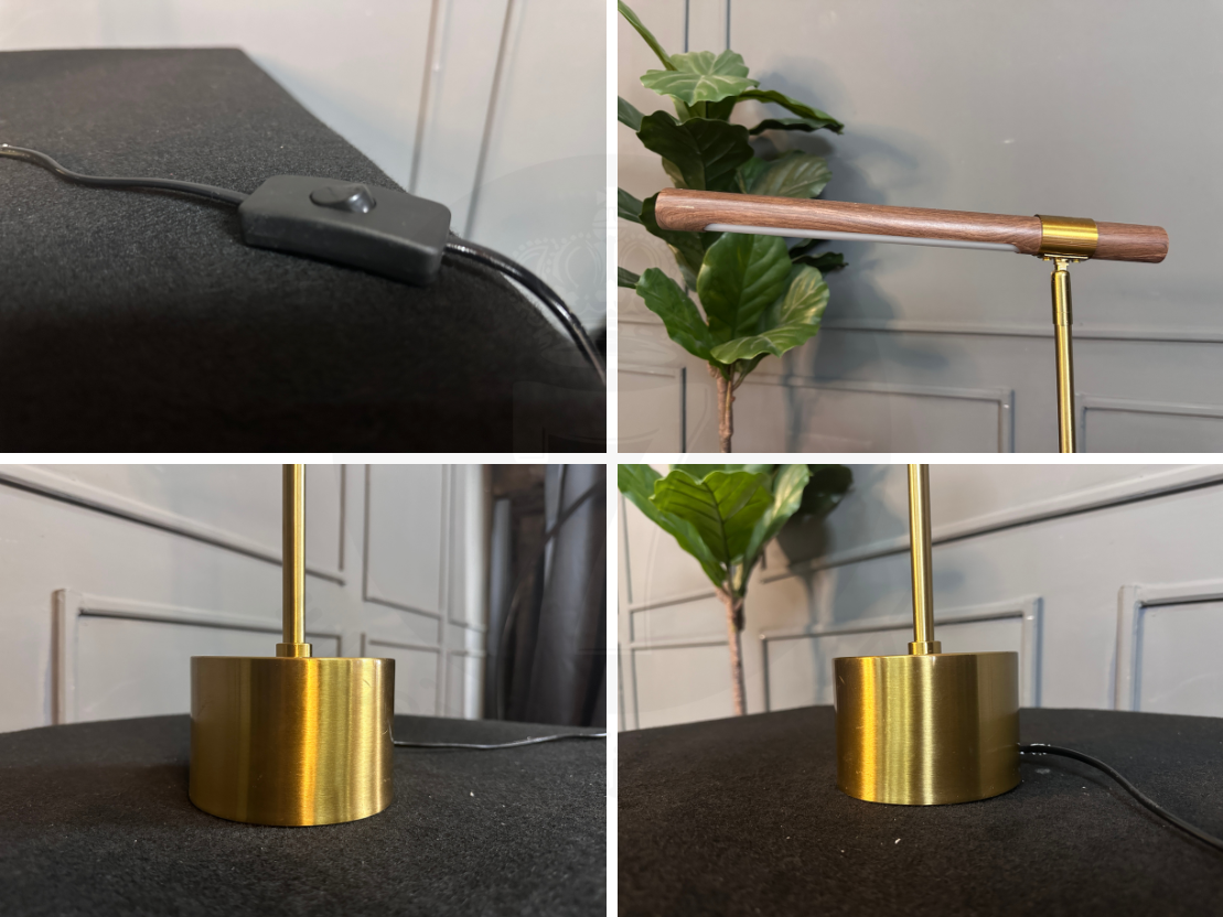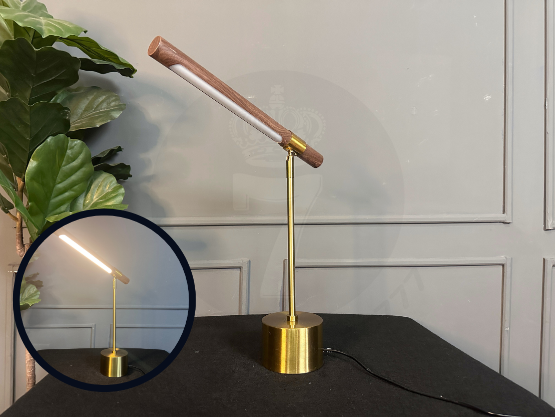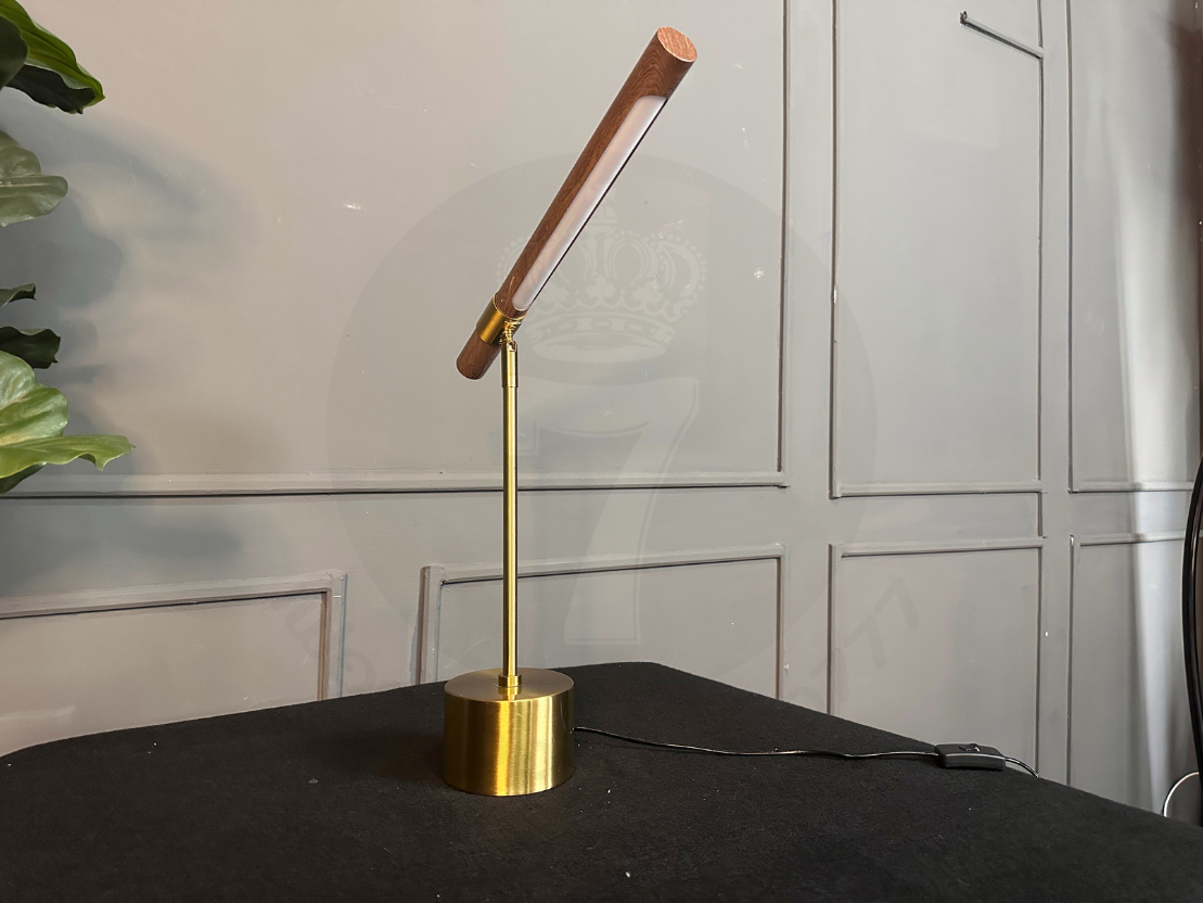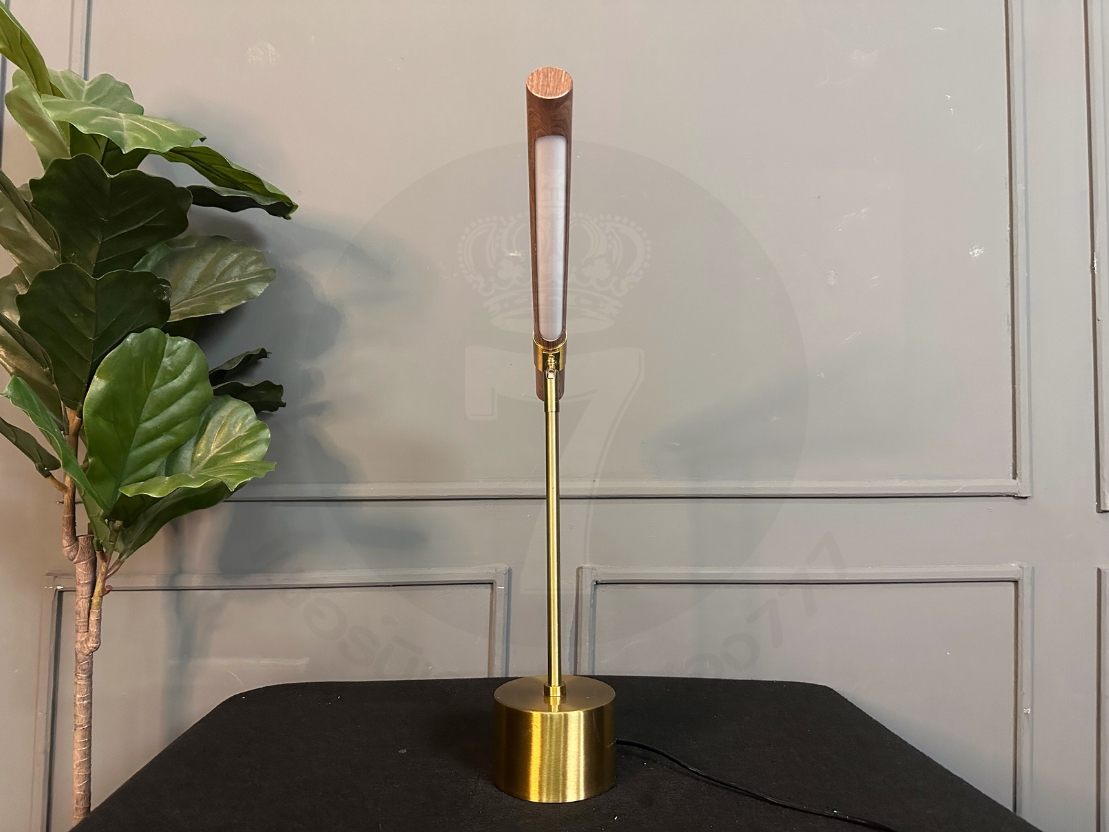 โคมไฟตั้งโต๊ะ โป๊ะไม้กลึง พับเก็บได้ ฐานและขา เหล็กสีโกลด์