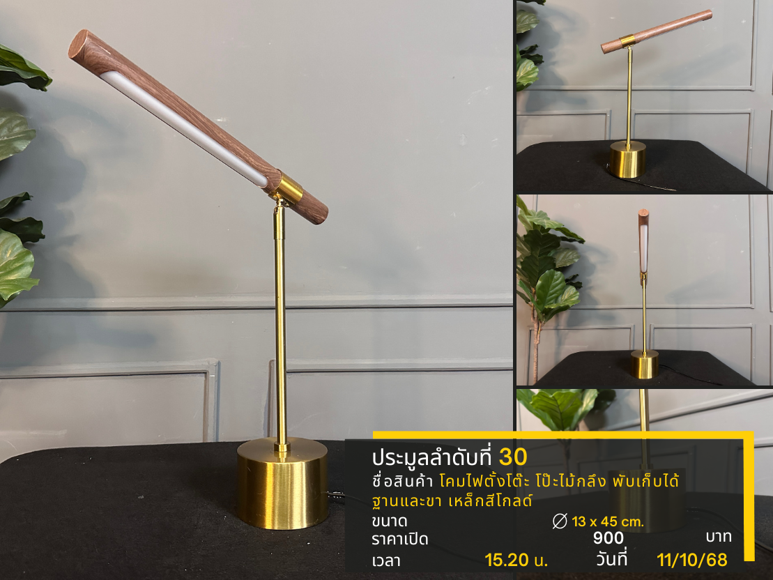 30 โคมไฟตั้งโต๊ะ โป๊ะไม้กลึง พับเก็บได้ ฐานและขา เหล็กสีโกลด์