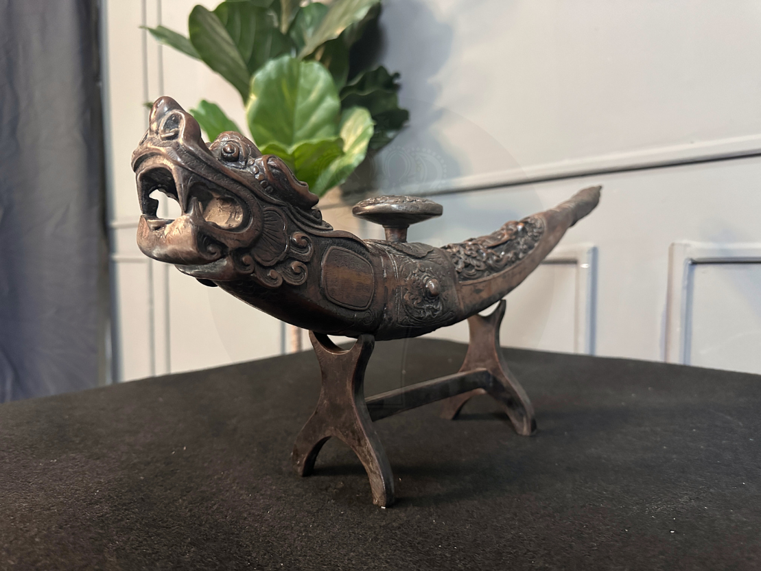 ไปป์ไม้แกะสลักรูปมังกรสไตล์จีน (มีรอบตามภาพ)