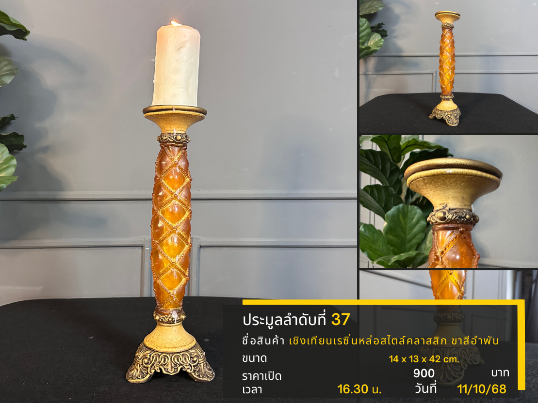 37 เชิงเทียนเรซิ่นหล่อสไตล์คลาสสิก ขาสีอำพัน