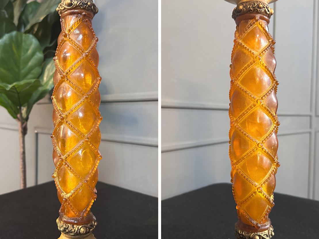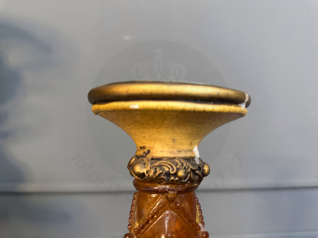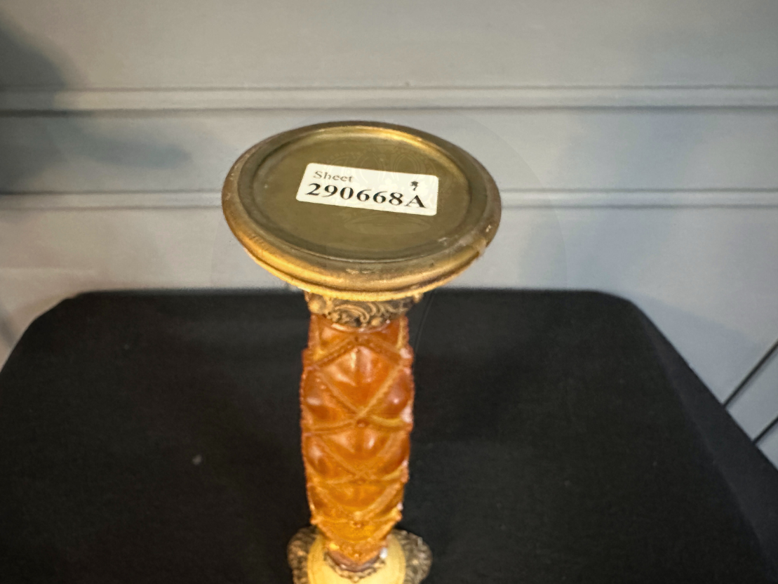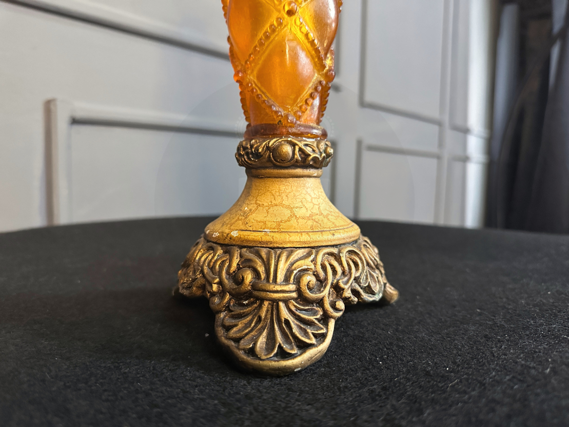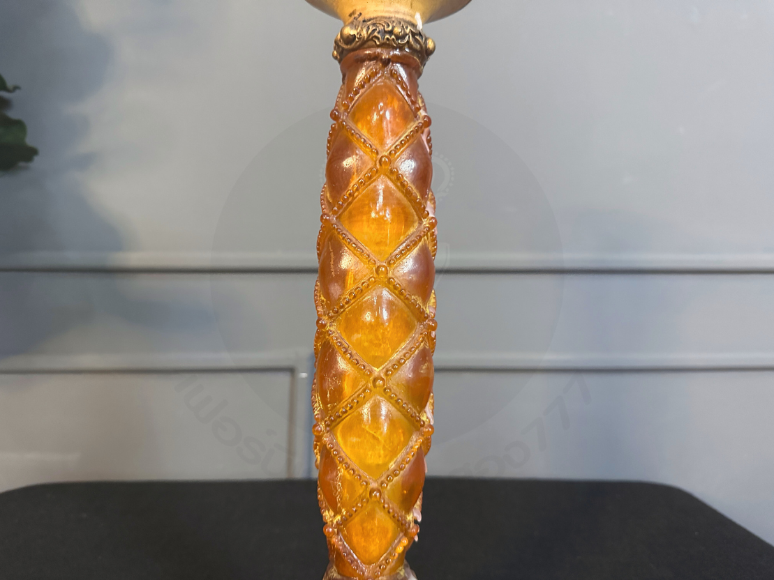 เชิงเทียนเรซิ่นหล่อสไตล์คลาสสิก ขาสีอำพัน (มีรอยคราบเปื้อนตามภาพและไม่รวมเทียม)