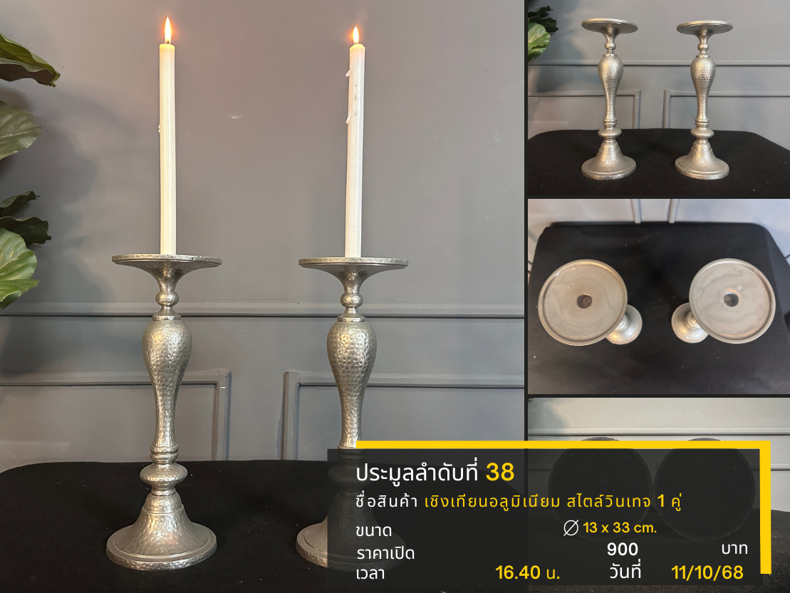 38 เชิงเทียนอลูมิเนียม สไตล์วินเทจ 1 คู่