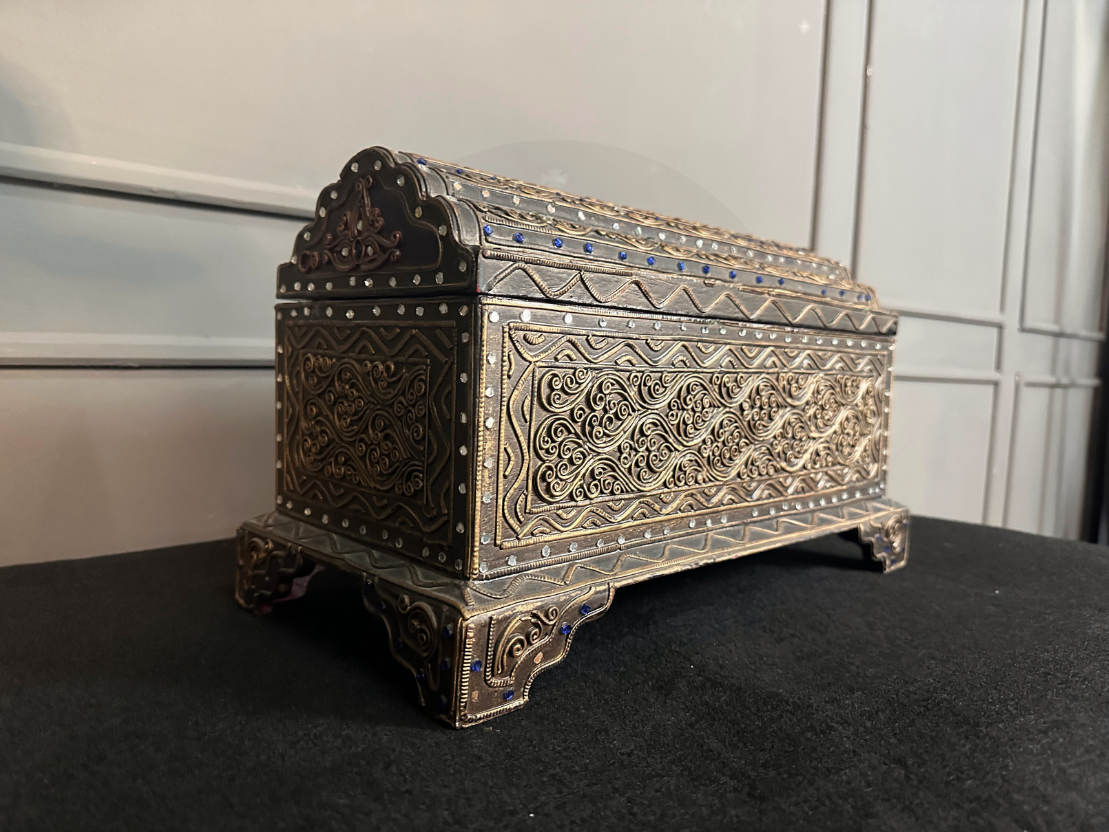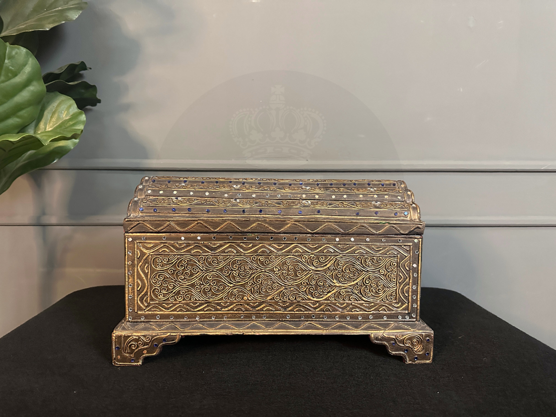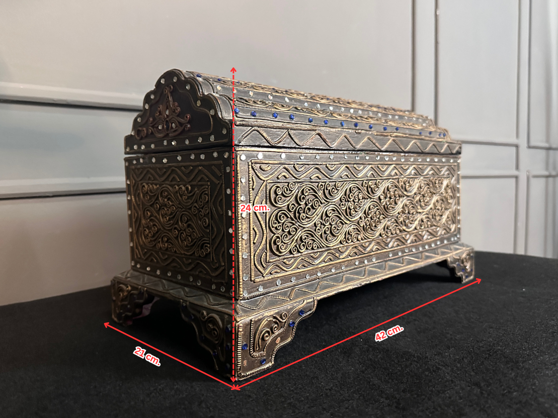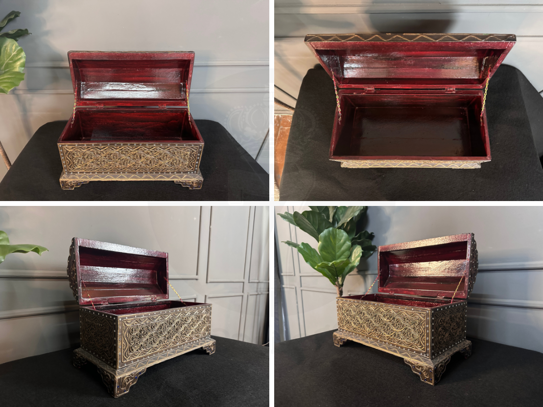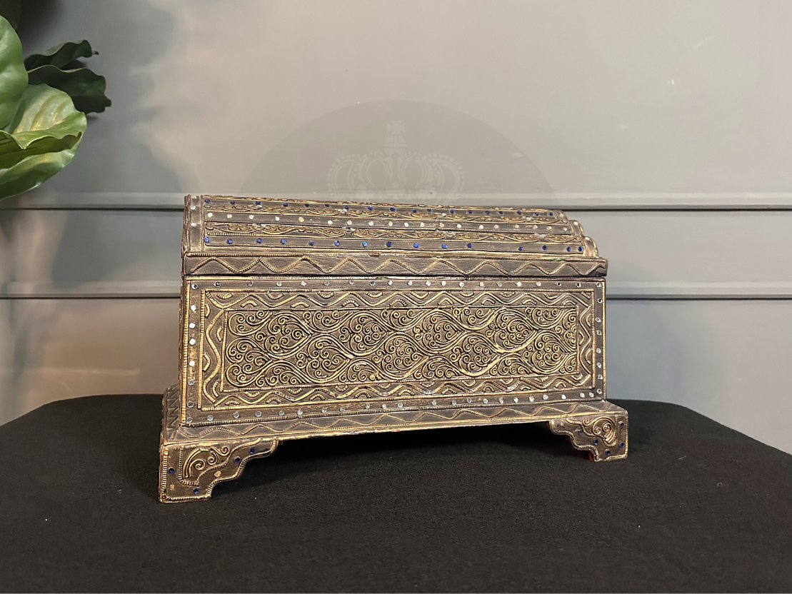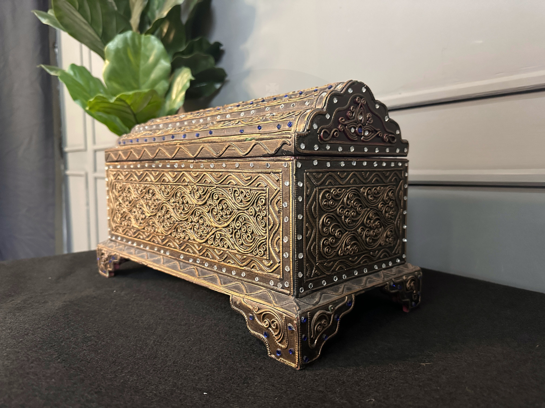 หีบใส่ของไม้สัก สไตล์วินเทจประดับกระจกโมเสก (กระจกโมเสกหลุดนิดหน่อย)