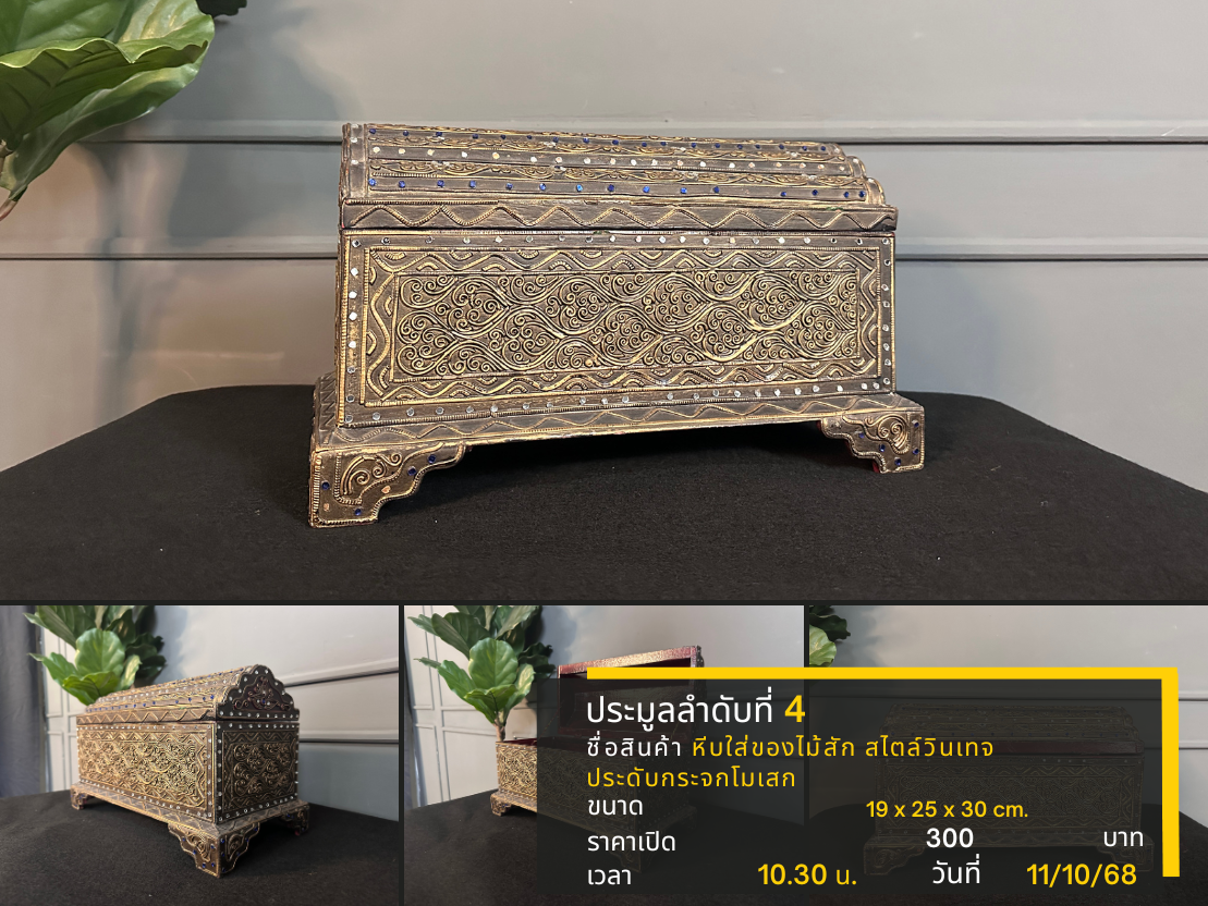 4 หีบใส่ของไม้สัก สไตล์วินเทจประดับกระจกโมเสก