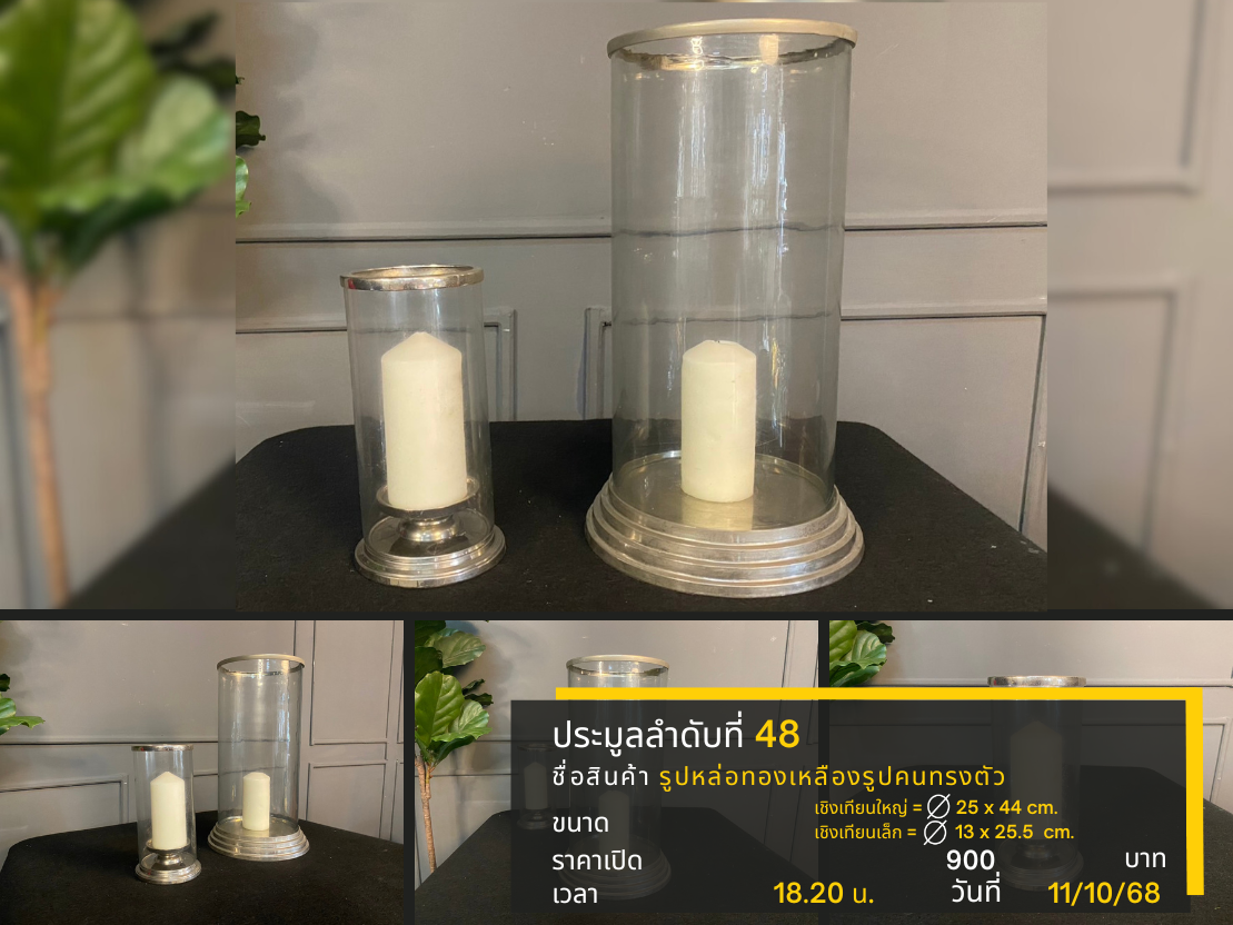 48 เชิงเทียนโป๊ะแก้วฐานสแตนเลสสีเงิน 2 ขนาด