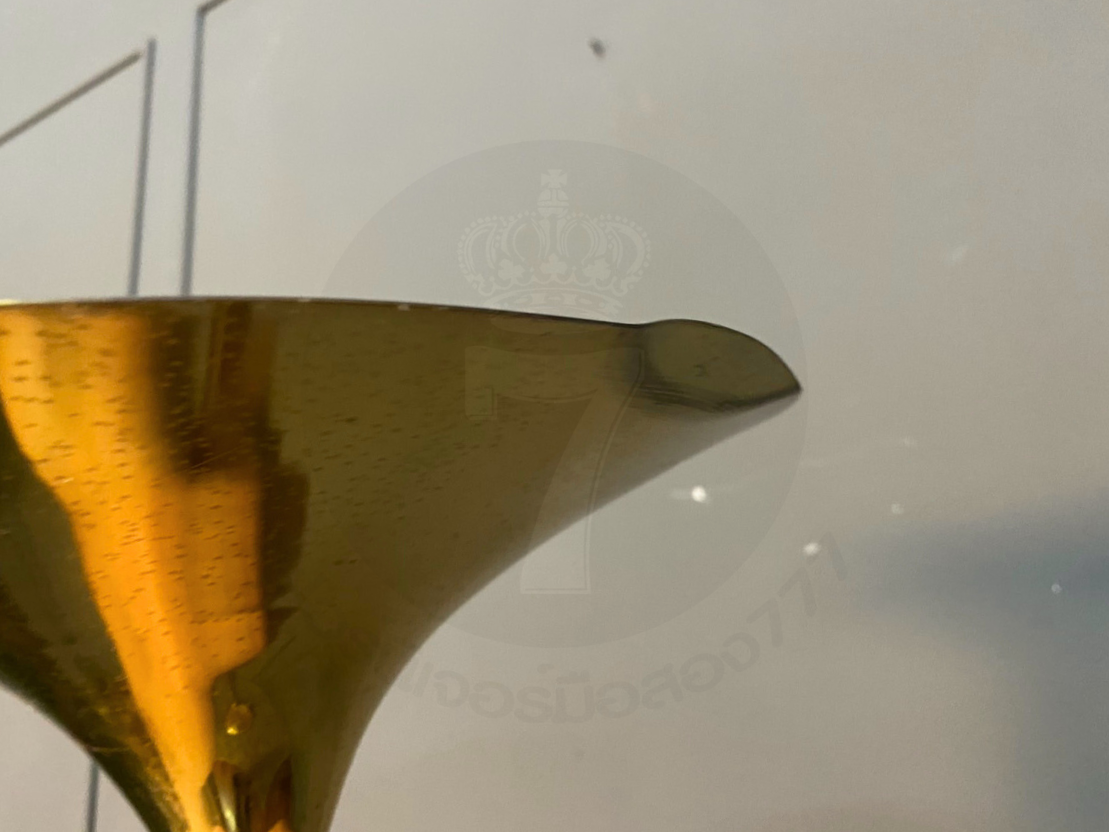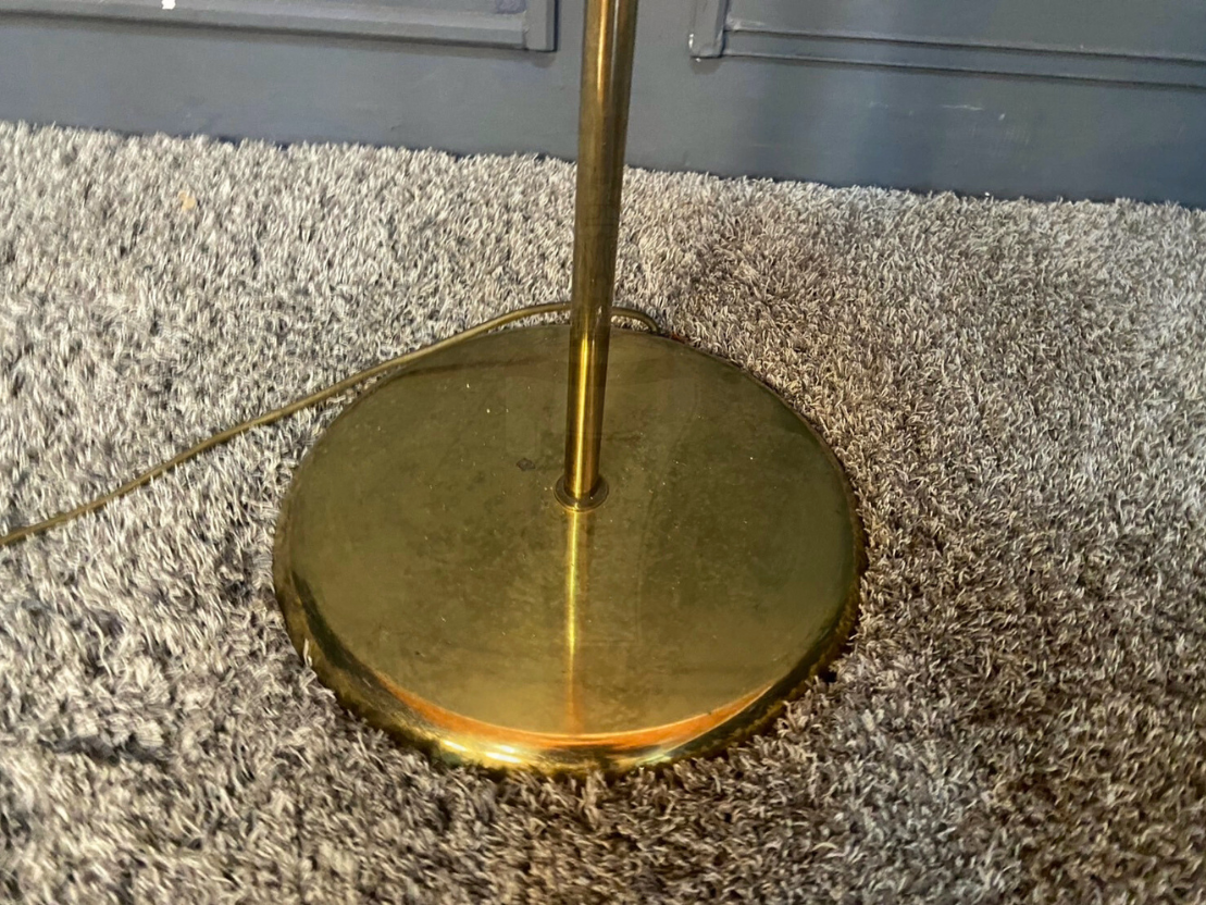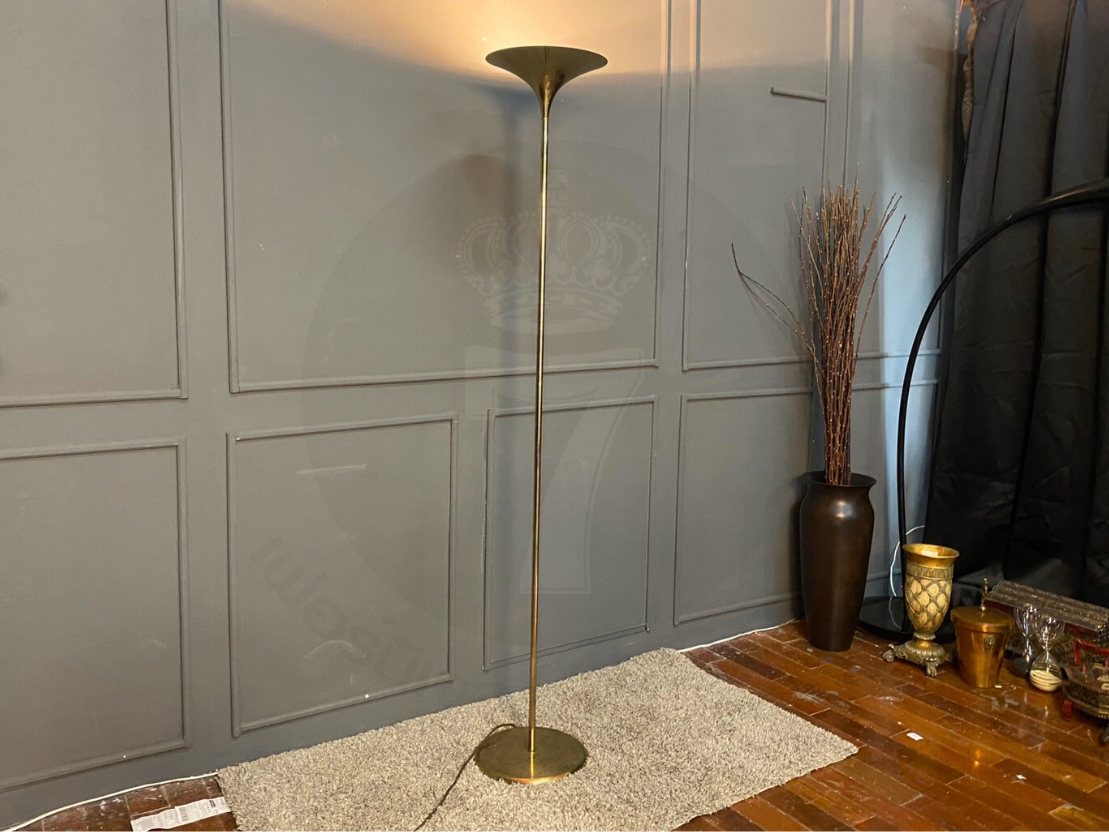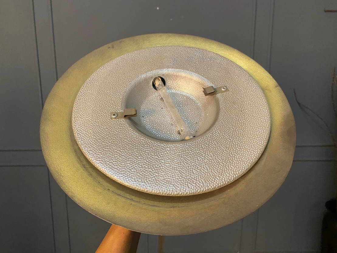 โคมไฟตั้งพื้น สแตนเลสสีทอง ฐานแผ่นเหล็ก ปรับ ความสว่างของไฟได้ (ตำหนิโป๊ะมีรอยบิ่นตามภาพ)
