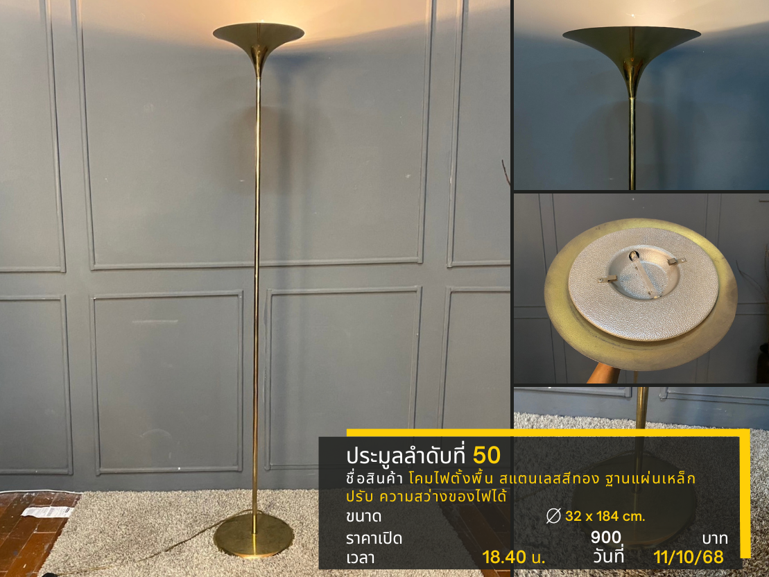 50 โคมไฟตั้งพื้น สแตนเลสสีทอง ฐานแผ่นเหล็ก ปรับ ความสว่างของไฟได้