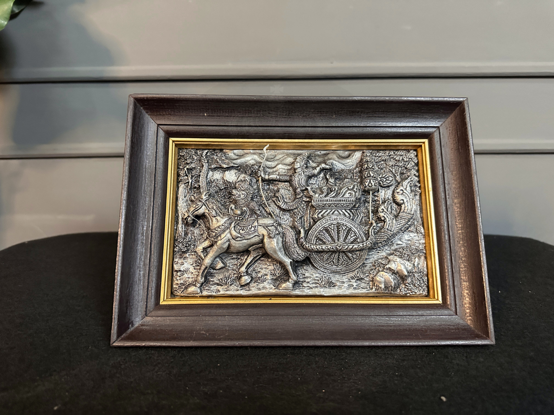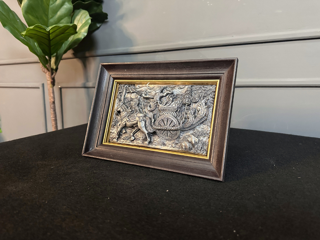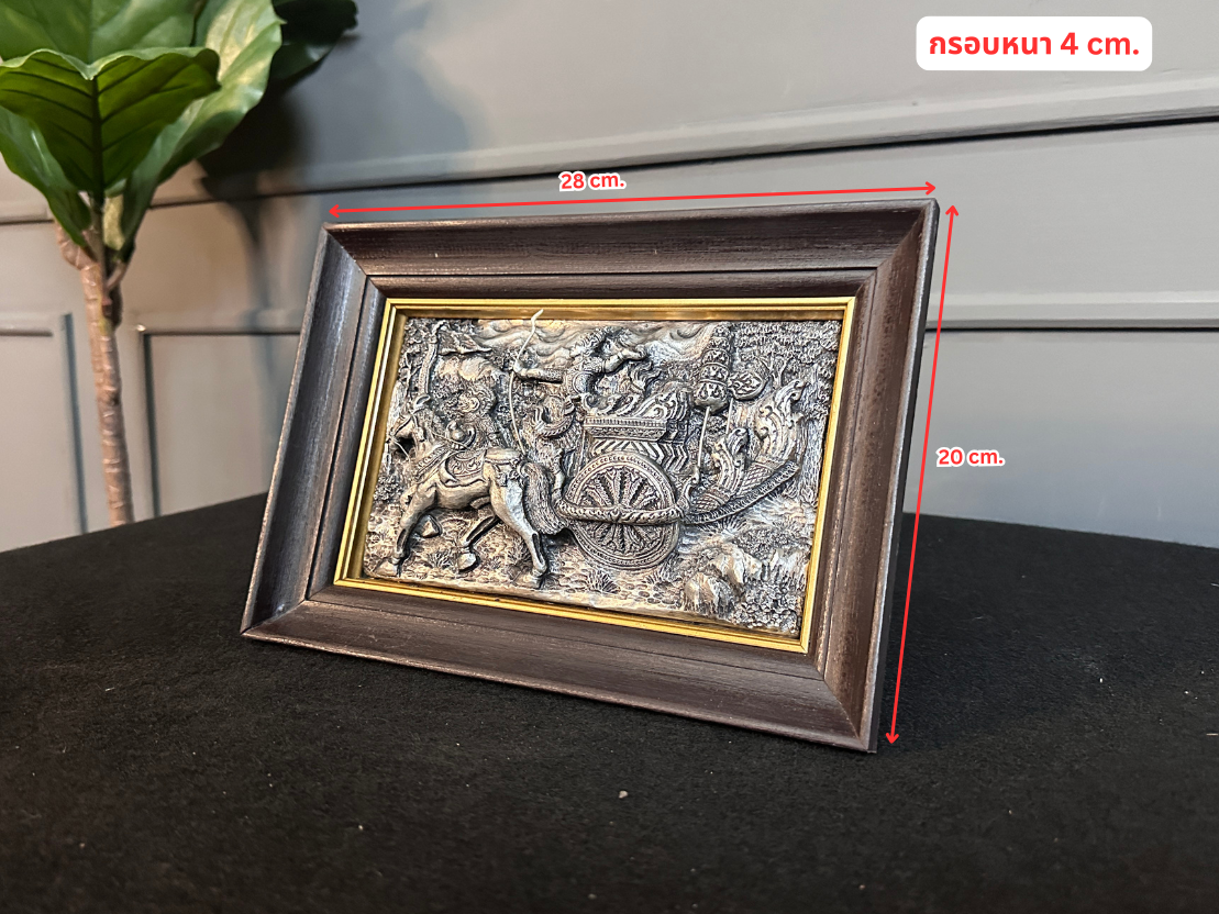 แผ่นภาพโลหะตอกลายรามเกียรติ์ กรอบไม้สีดำ