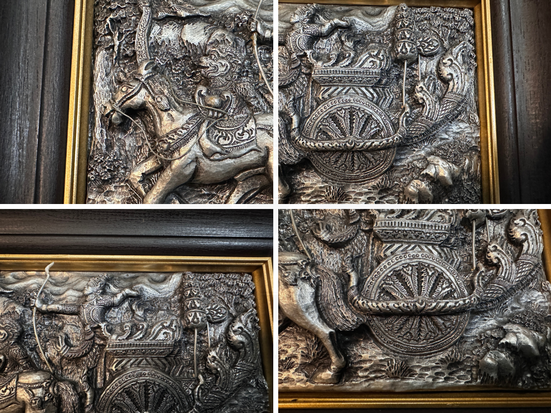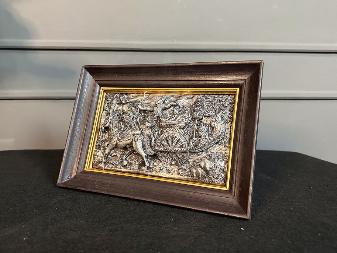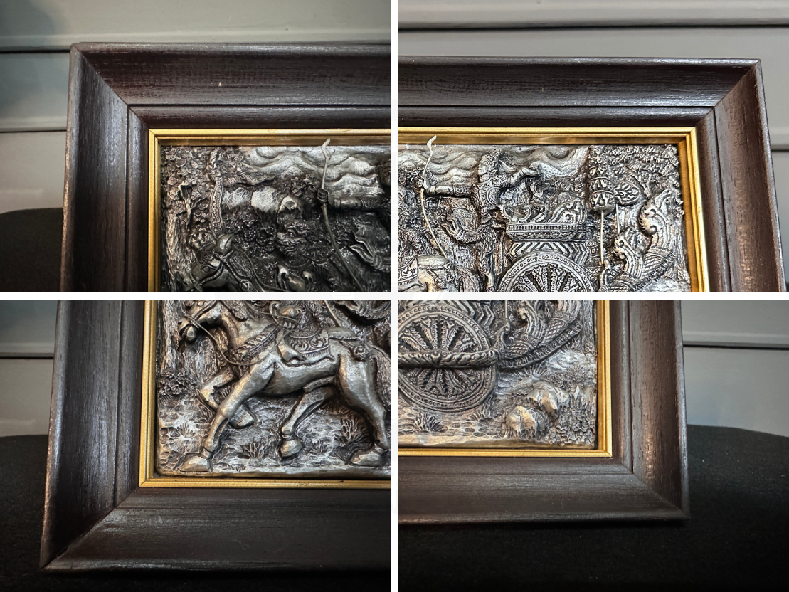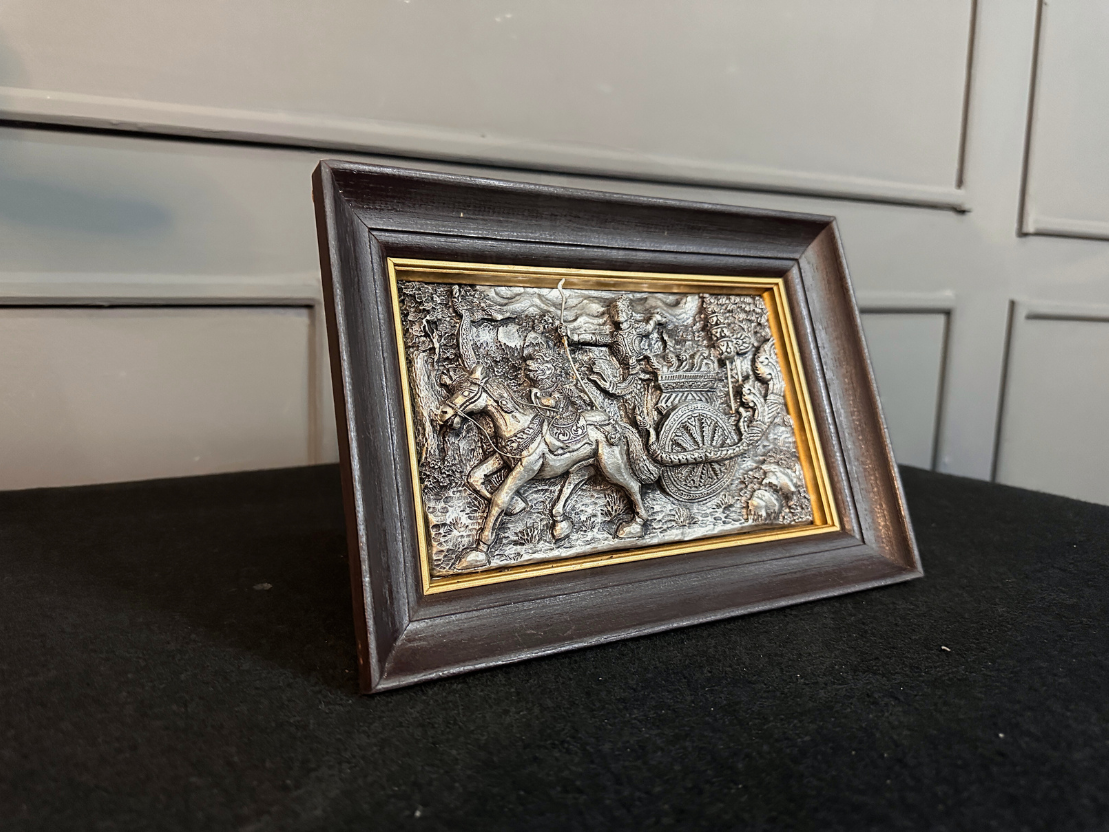 แผ่นภาพโลหะตอกลายรามเกียรติ์ กรอบไม้สีดำ