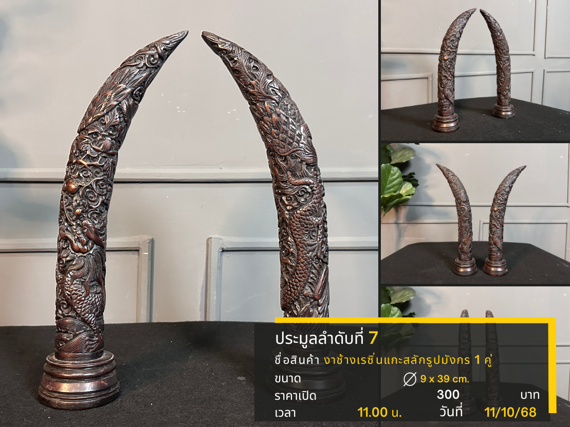 7 งาช้างเรซิ่นแกะสลักรูปมังกร 1 คู่