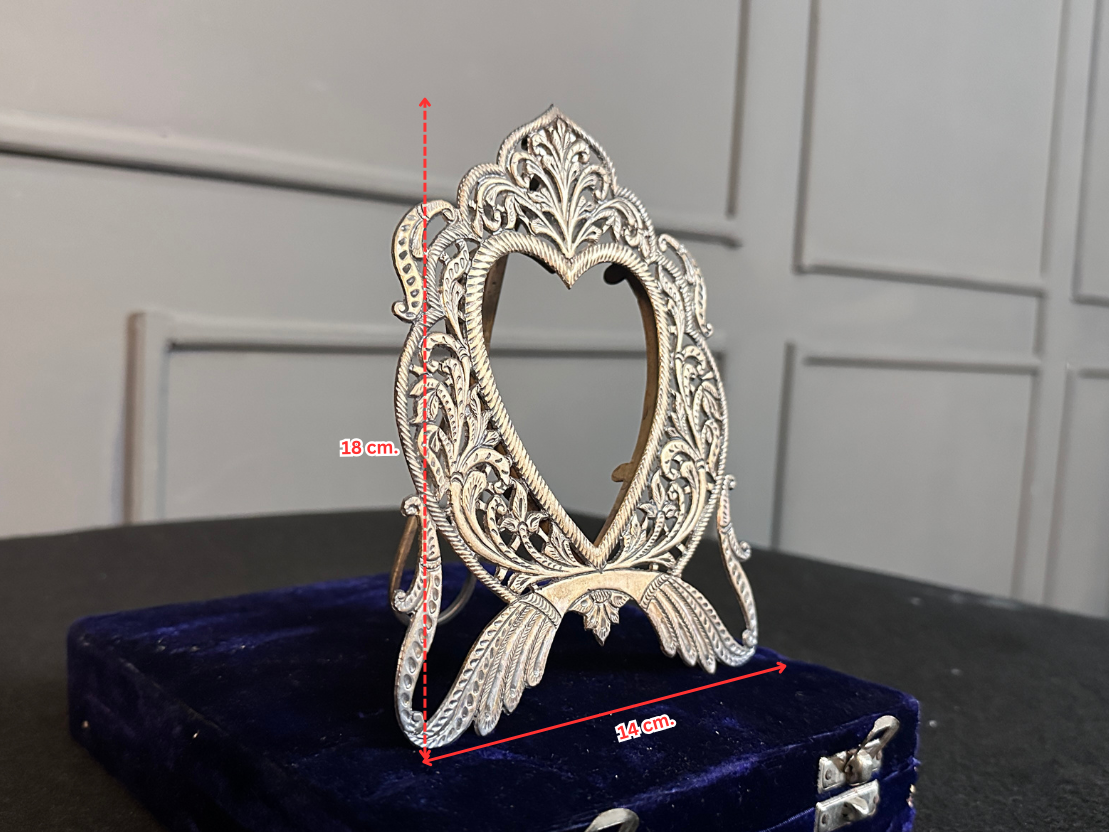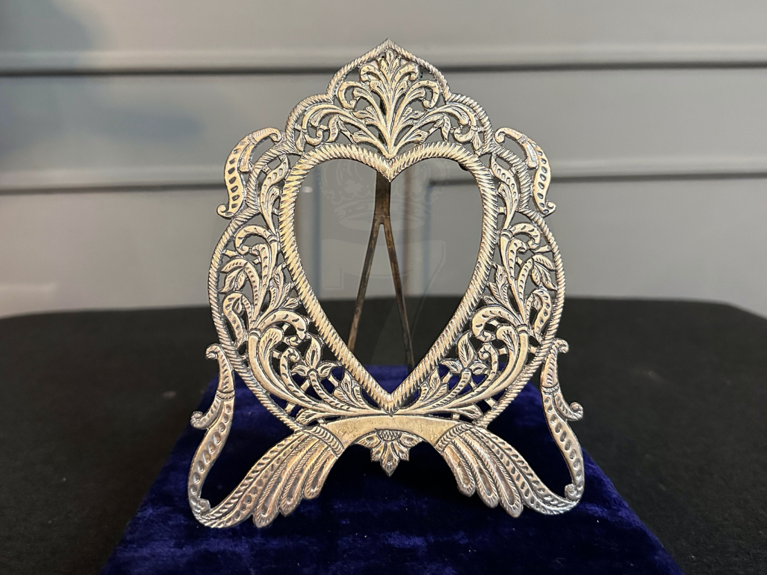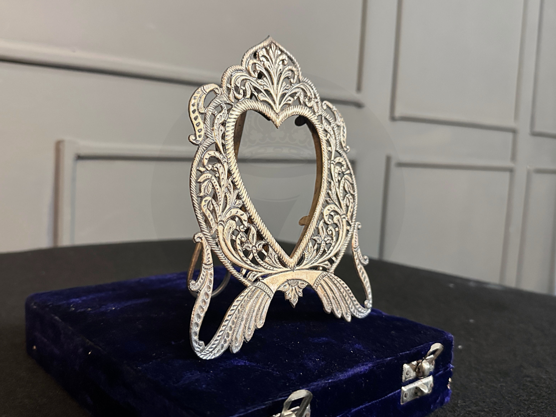 กรอบรูปเงินฉลุลาย งานHandmade พร้อมกล่องกำมะหยี่สีม่วง (กล่องมีรอยขาดตามภาพ)