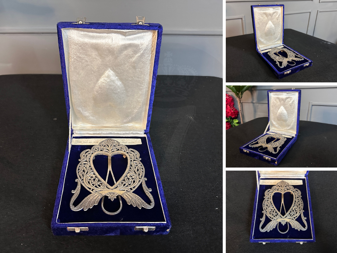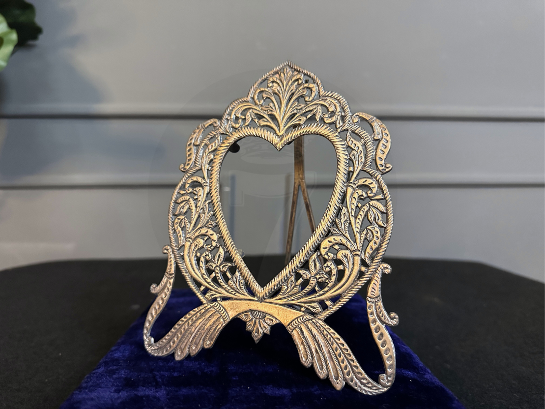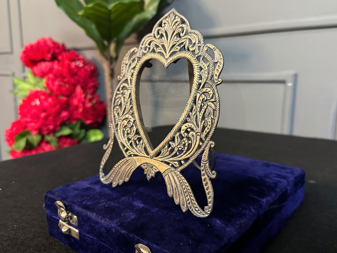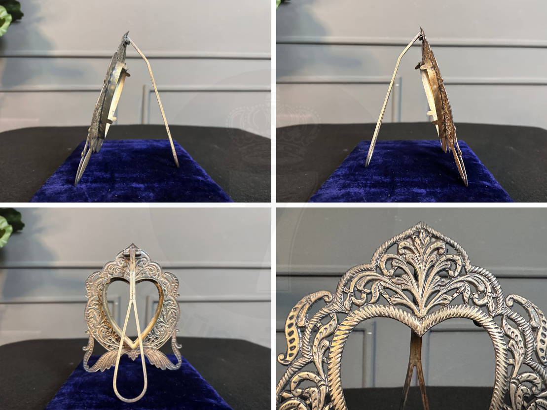 กรอบรูปเงินฉลุลาย งานHandmade พร้อมกล่องกำมะหยี่สีม่วง (กล่องมีรอยขาดตามภาพ)